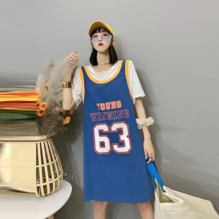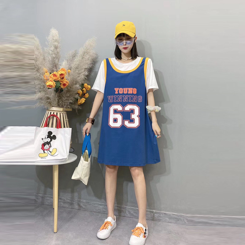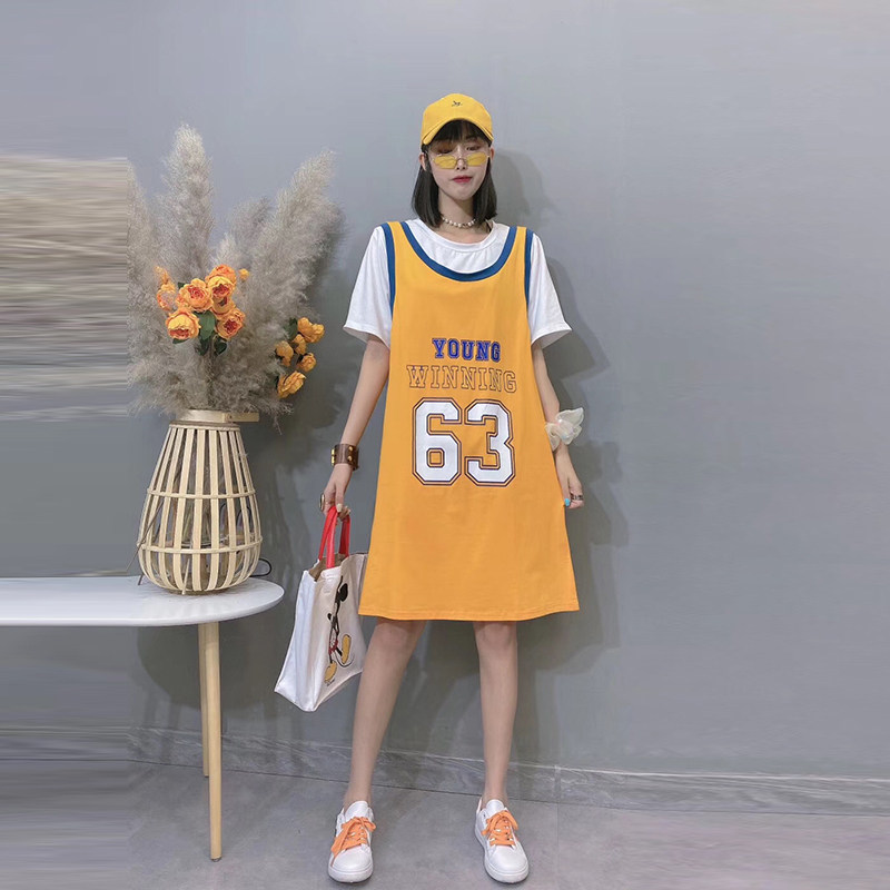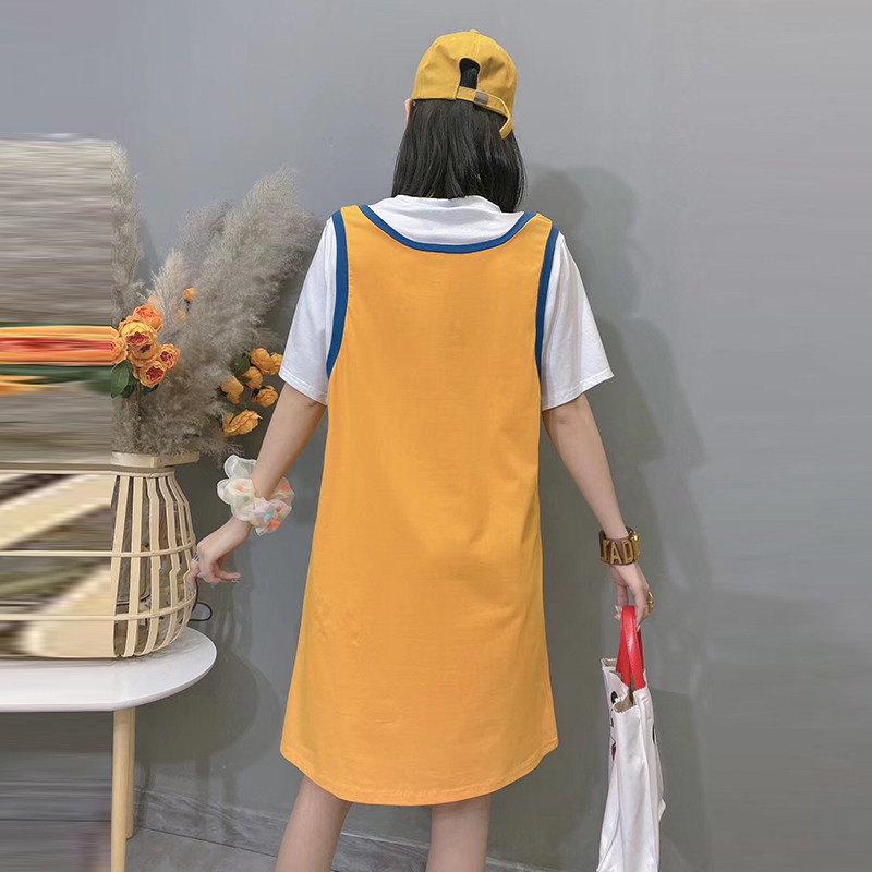 女装 假两件T恤背心连衣裙加大码 宽松显瘦200斤 新款 胖妹妹2020夏装