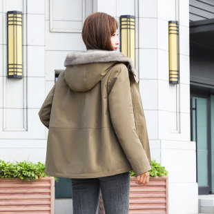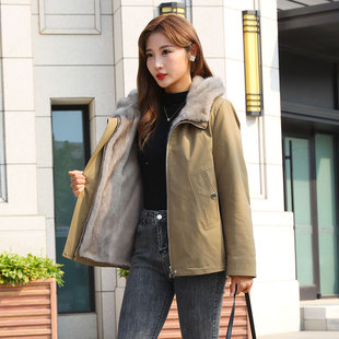 整貂皮内胆派克服女2025新短款 冲锋衣小个子尼克服女宽松皮草外套