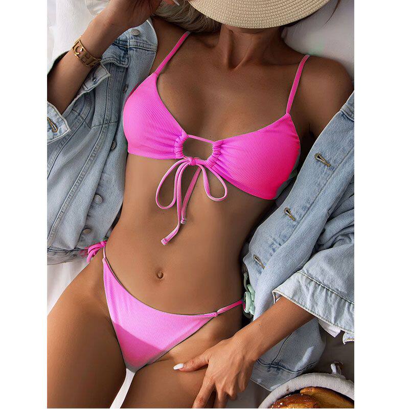 镂空露背冰丝材质bikini 女比基尼泳衣分体修身 2025年新款 欧美时尚