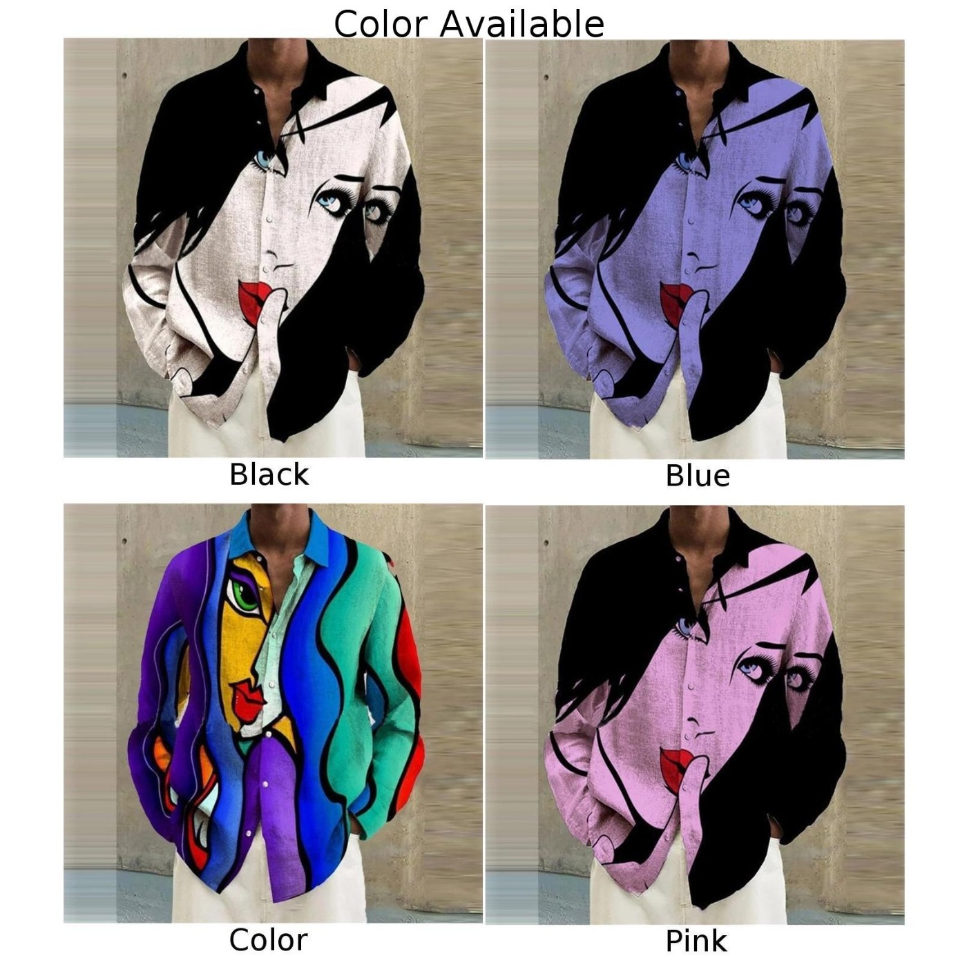printed 撞色衬衫 contrasting 印花翻领长袖 男 shirt人脸数码 Face