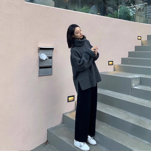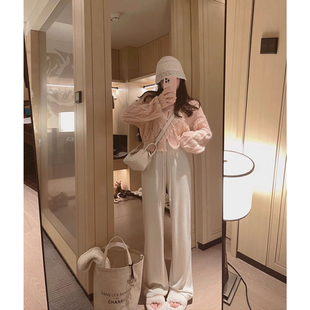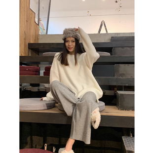 不勒肚子外穿保暖打底裤 加绒加厚2025新款 子秋冬季 孕妇针织阔腿裤