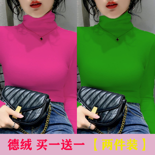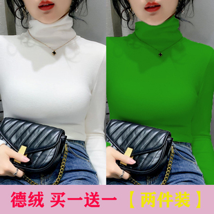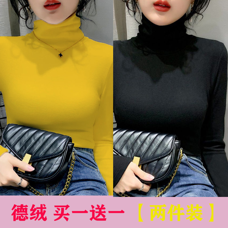 修身 秋冬季 显瘦t恤堆堆领护颈内搭保暖上衣 女长袖 德绒高领打底衫