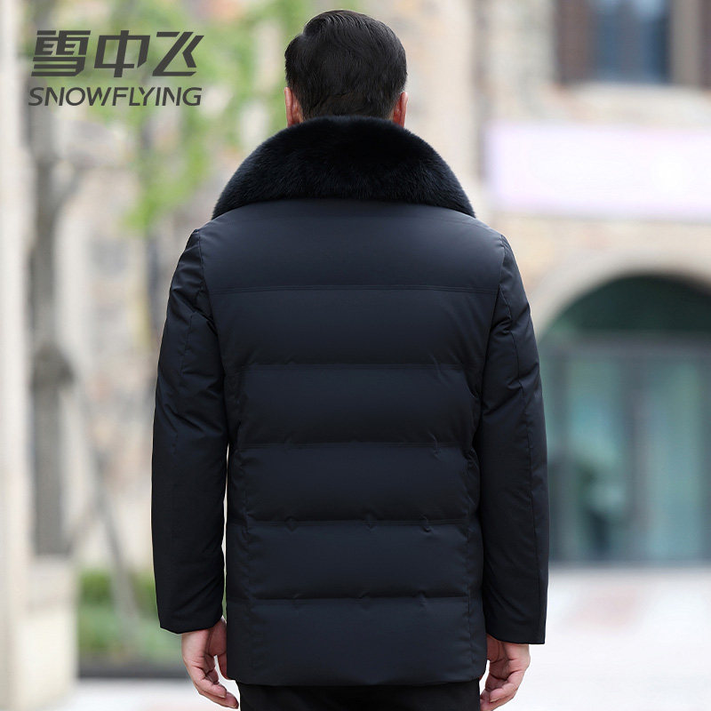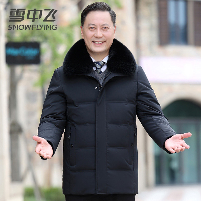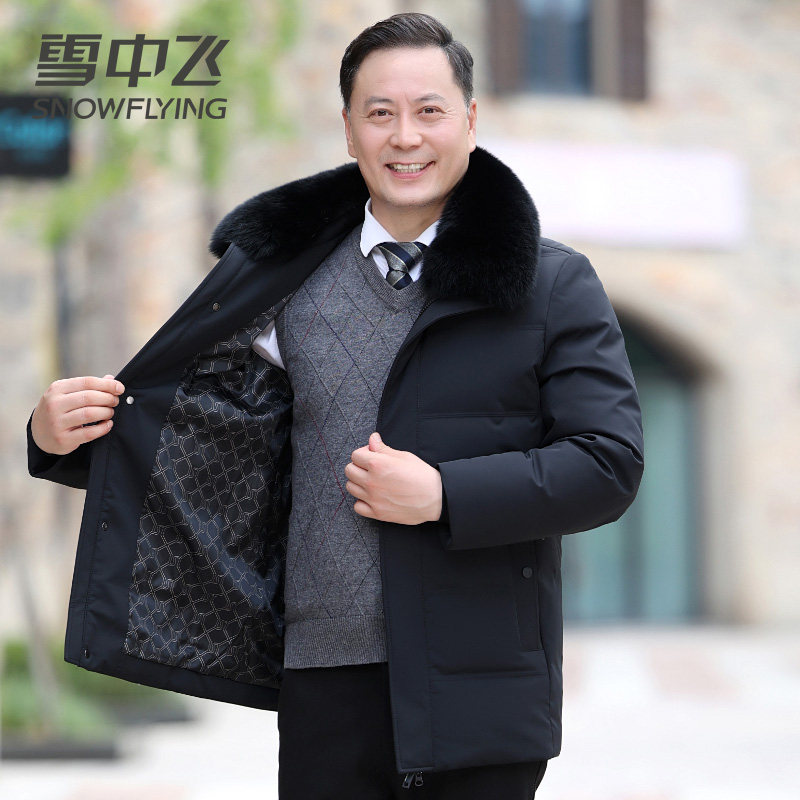 外套正品 冬季 真狐狸大毛领父亲上衣 羽绒服爸爸装 雪中飞中老年男士