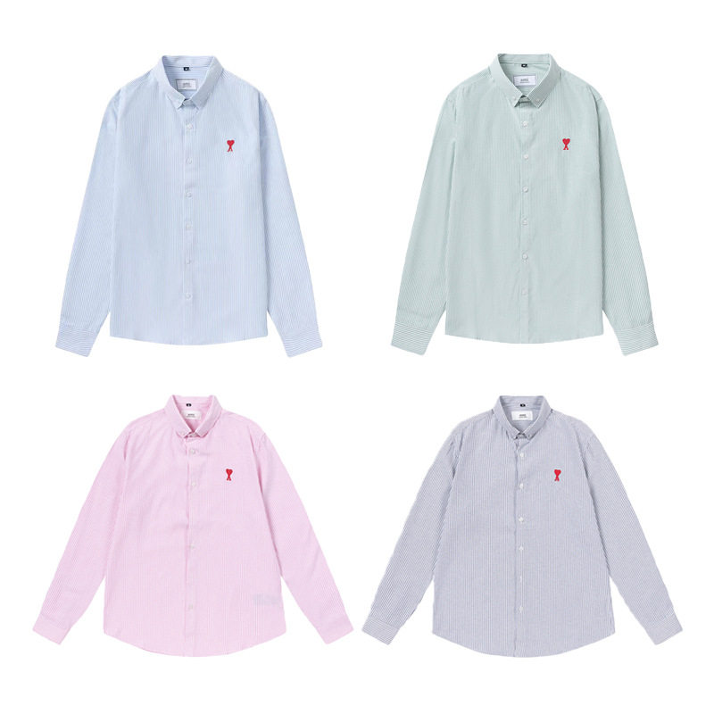 上衣 休闲宽松简约百搭艾米棉质长袖 Pink Pig潮牌小爱心刺绣衬衫