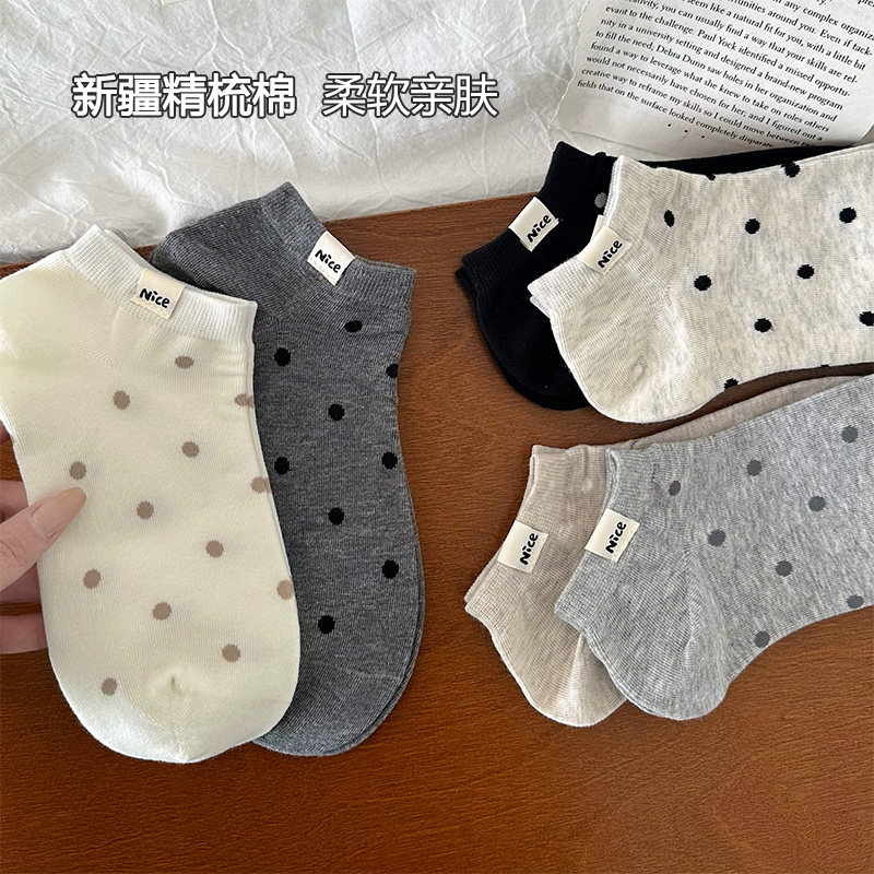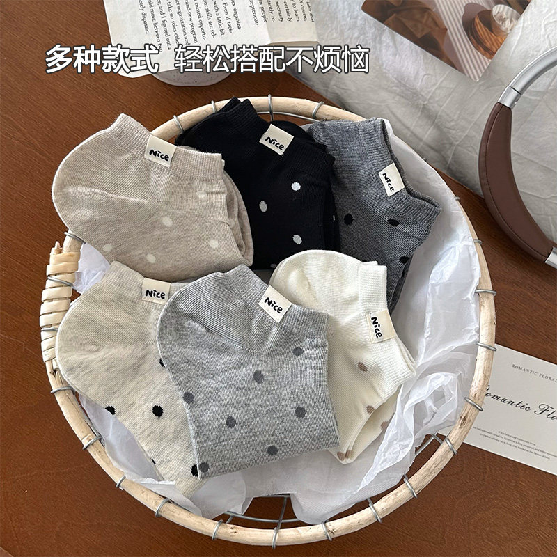 波点浅口袜子女款 ins潮防臭吸汗短袜学院风诸暨小白袜女袜 春秋季