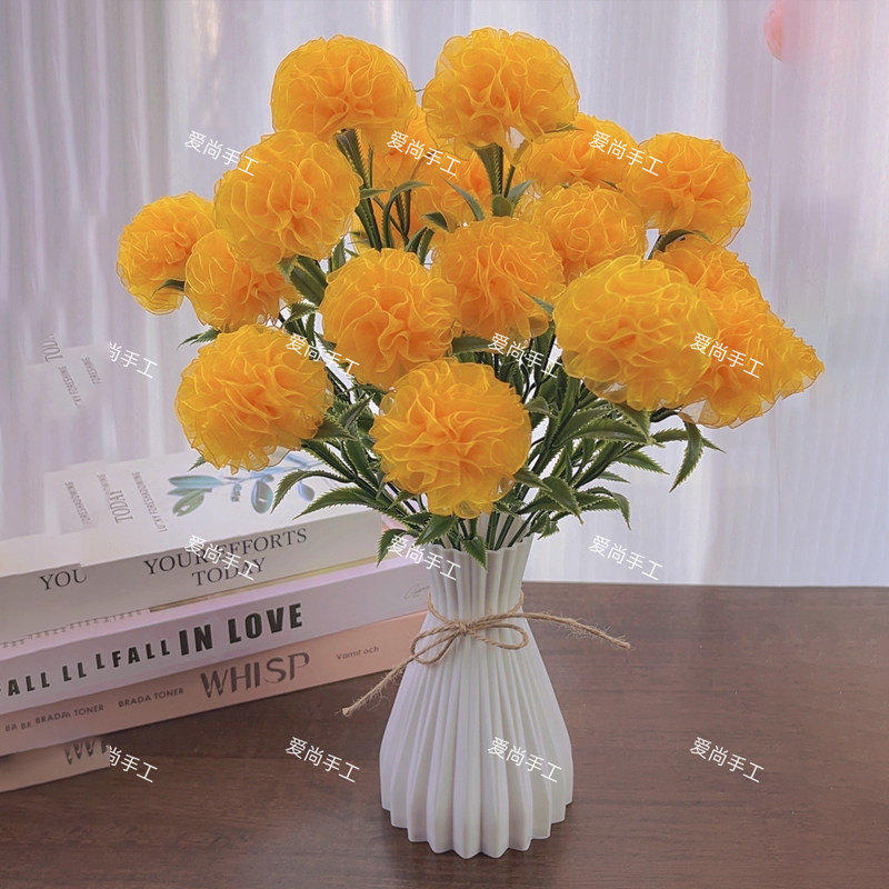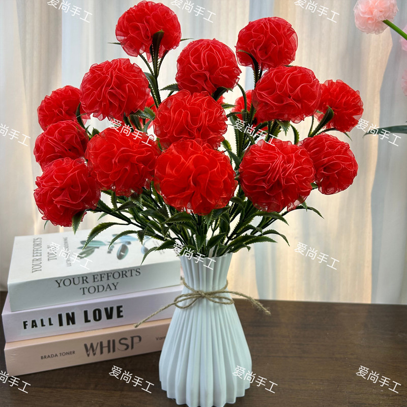 新品 2.5cm雪纱带康乃馨材料包桌摆件花束手工DIY 送防摔花瓶