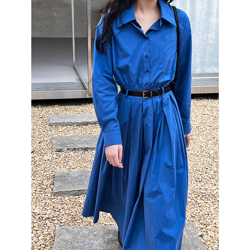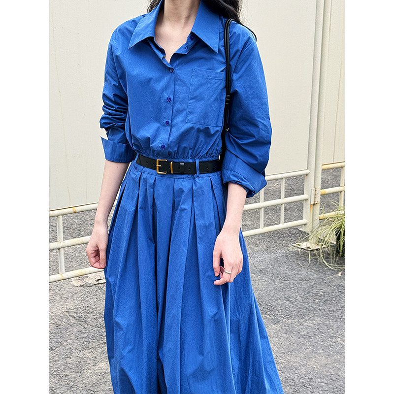 新款 腰带连衣裙女春季 气质高级感收腰显瘦长裙 气质Polo领衬衫 法式