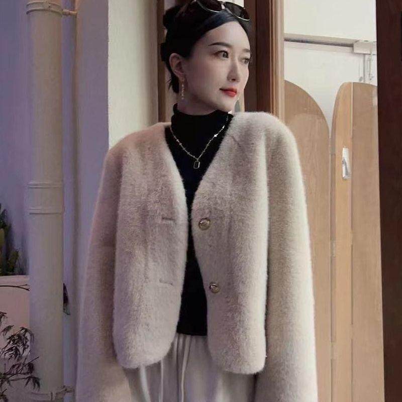 2025复古法式 欧貂绒外套女仿皮草水貂毛上衣 小香风毛毛保暖春款