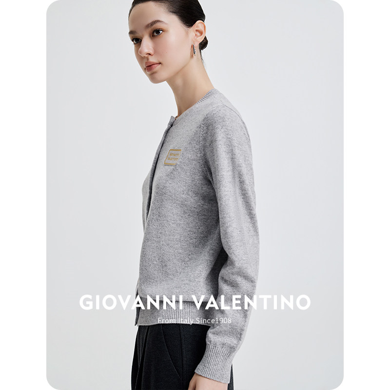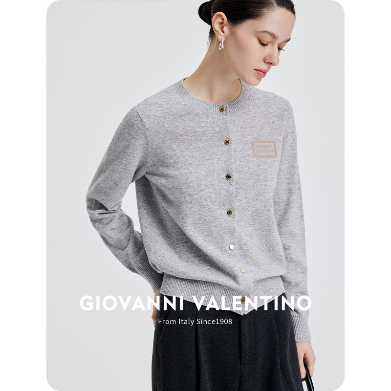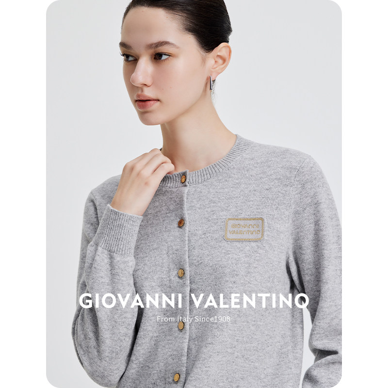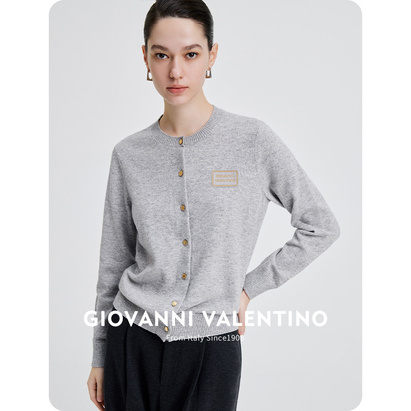 新款 女士春季 休闲纯羊毛毛衣外套 VALENTINO灰色针织开衫 GIOVANNI