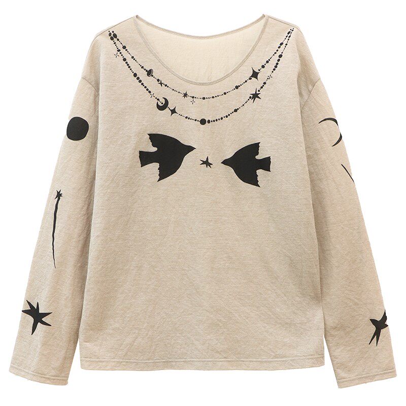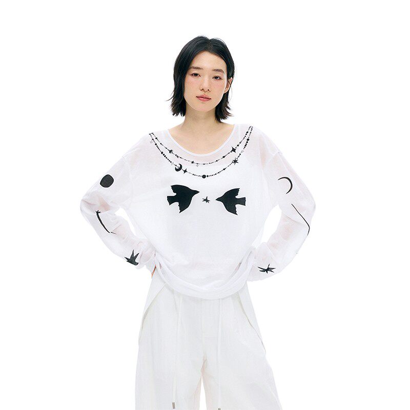 罩衫 牛津麻做皱印花微透长袖 上衣6524 飞鸟诗集 鹿与飞鸟