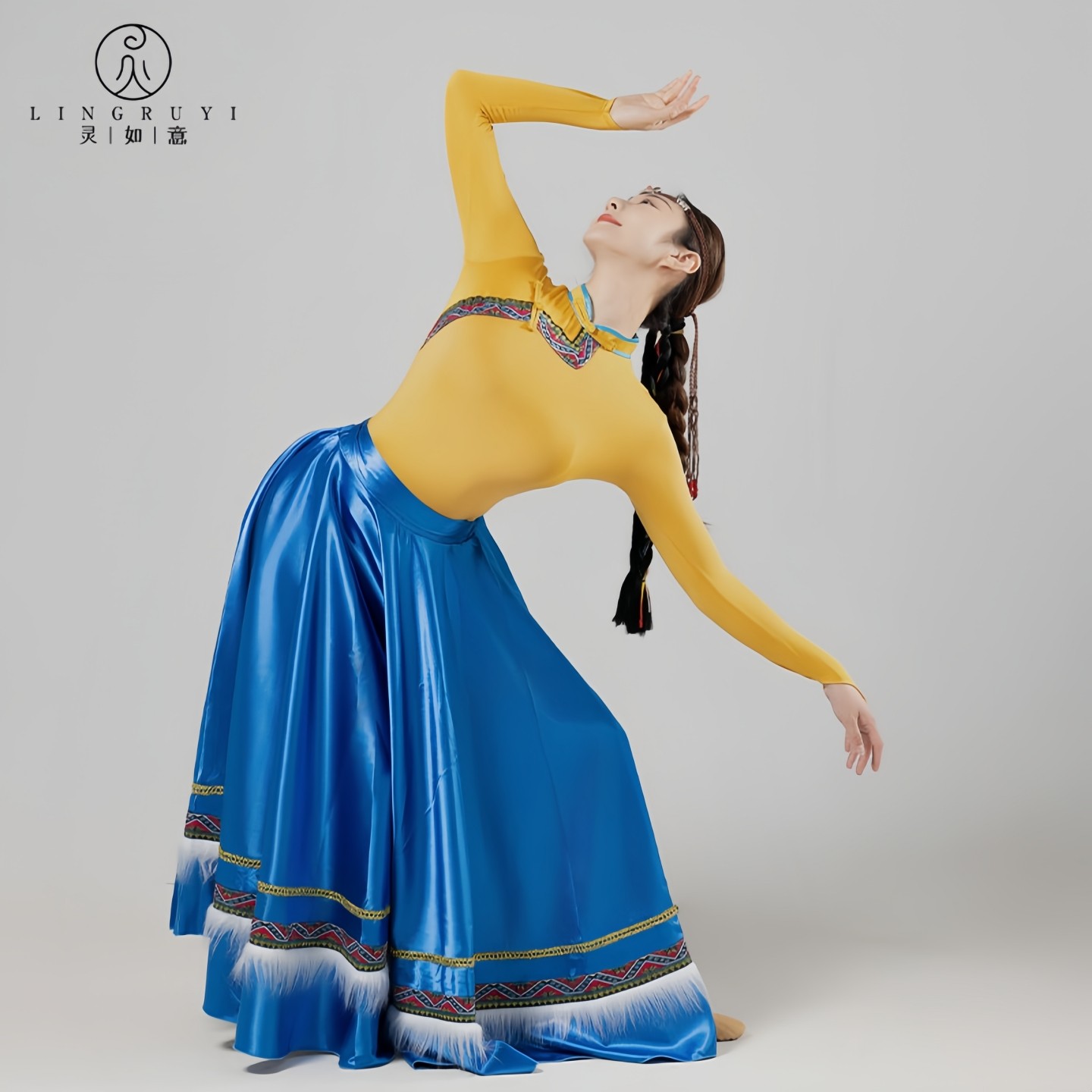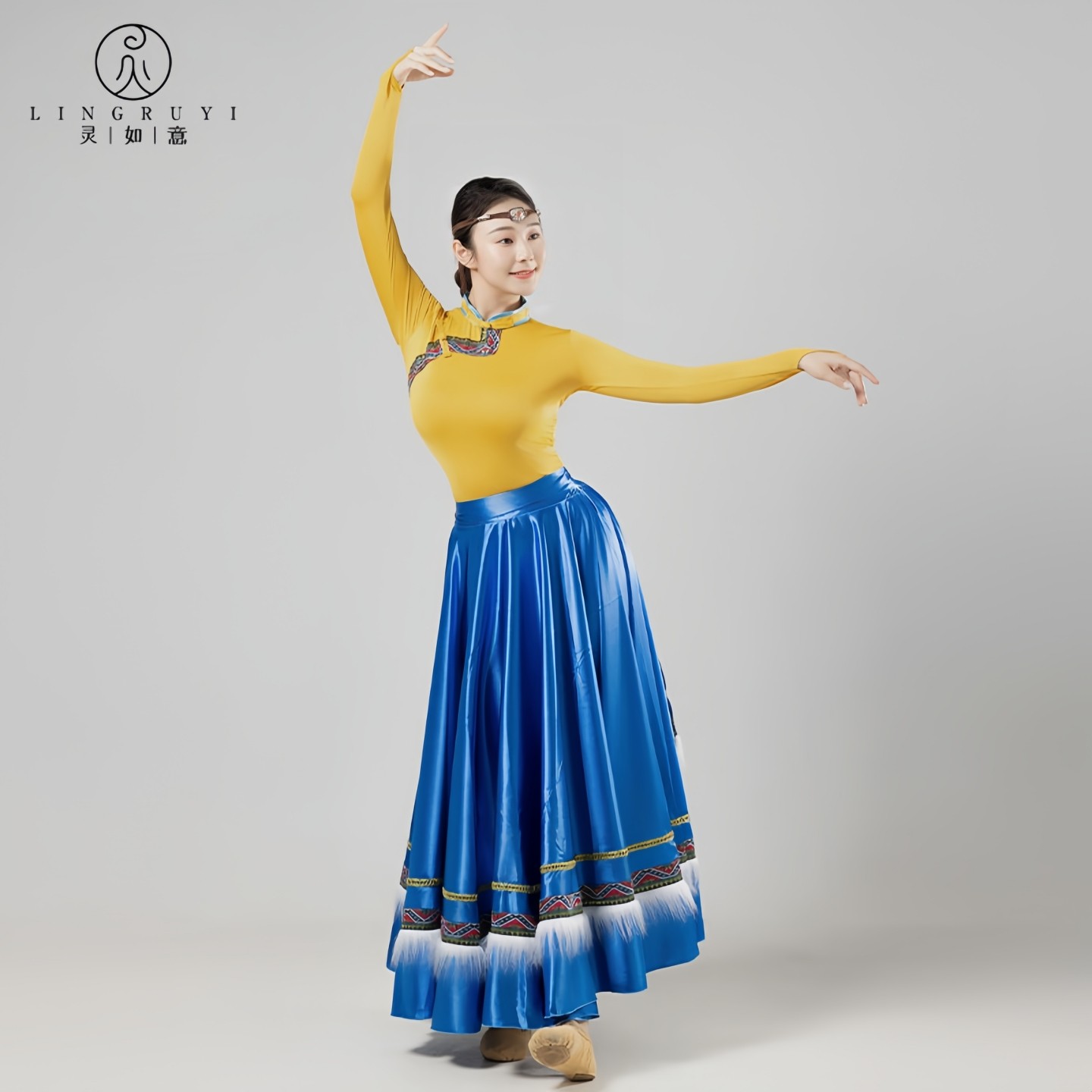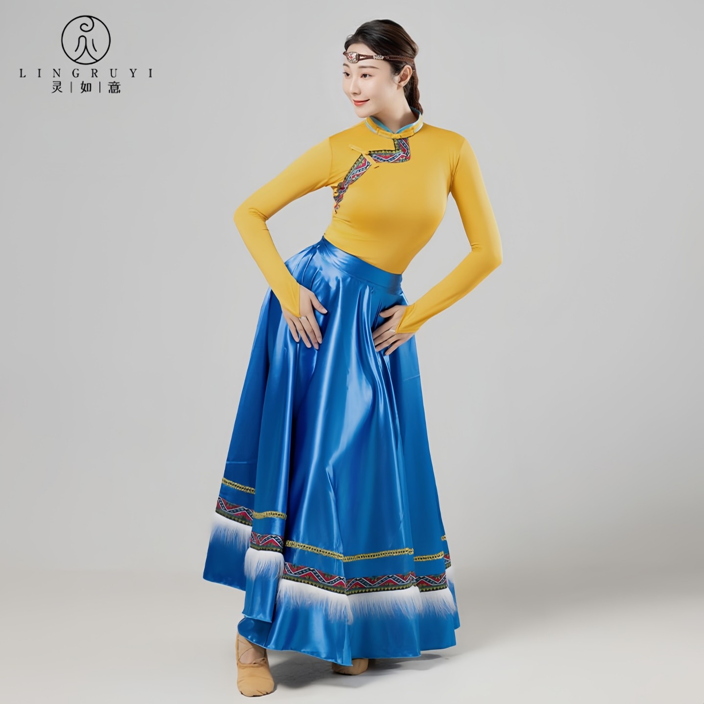 藏族舞蹈服艺考练功服大摆裙民族舞蹈演出服花与影广场舞女半身裙