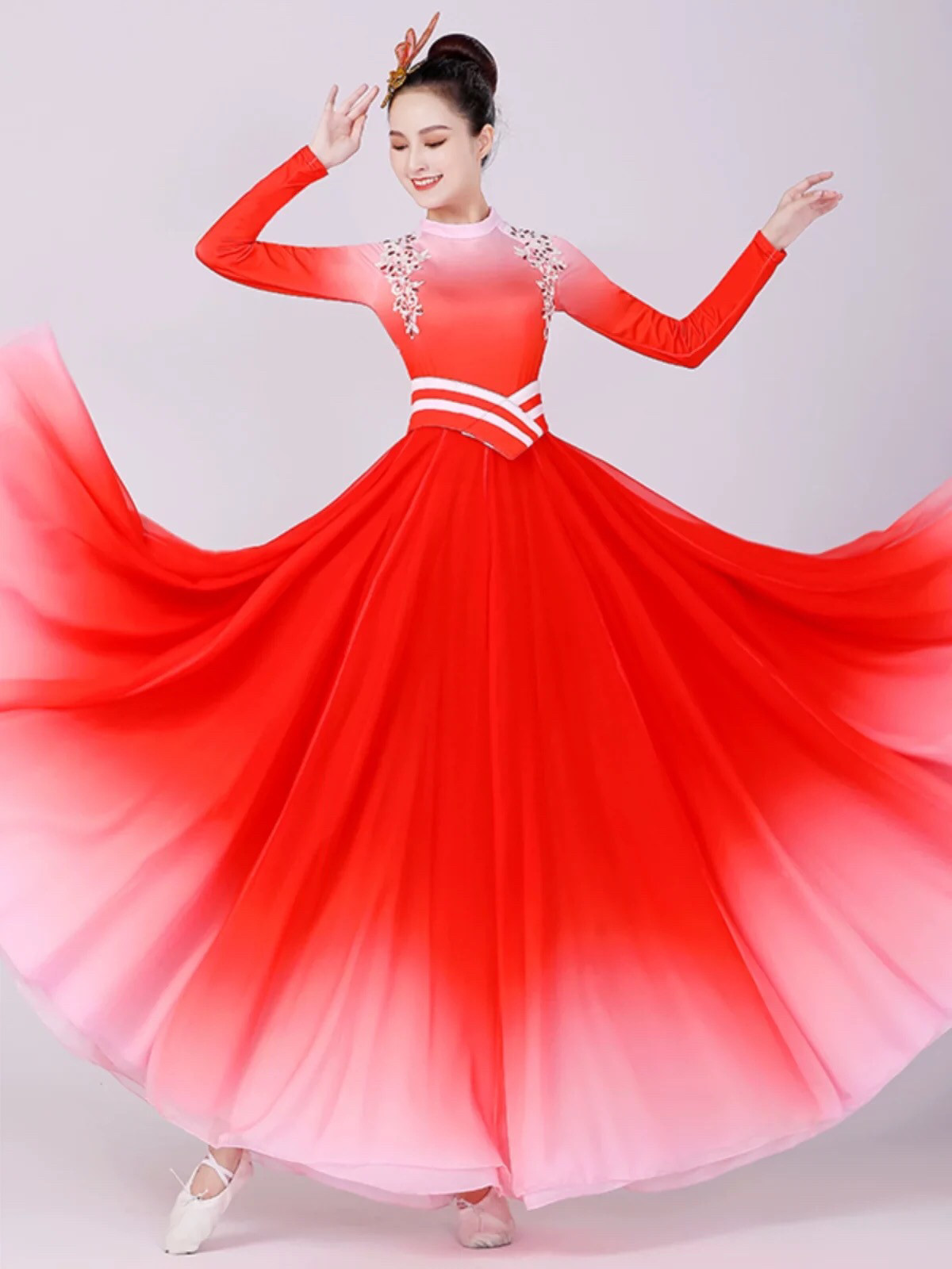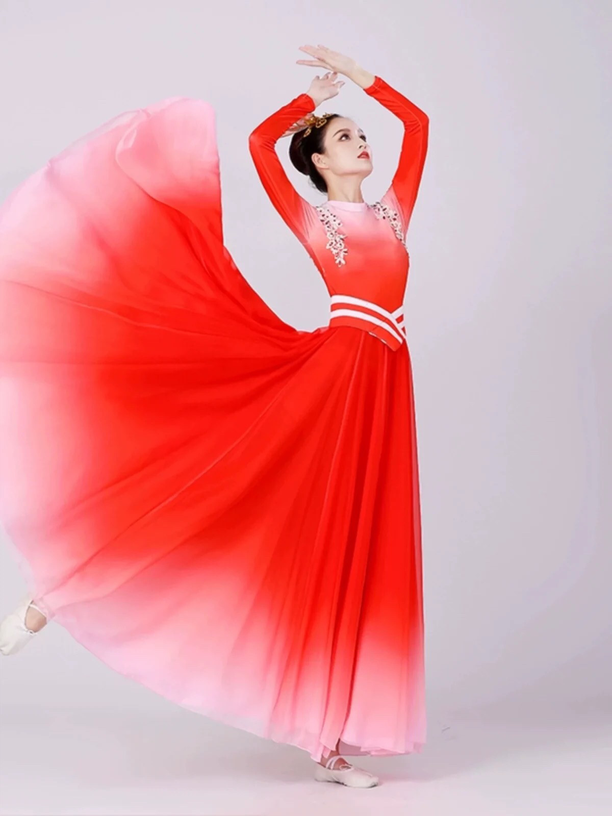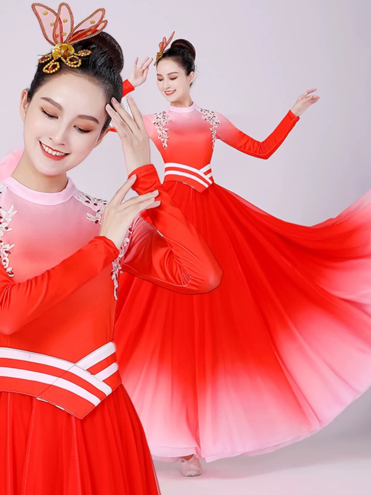 开场舞大摆裙灯火里 中国飘逸大型舞台演出服广场舞扇子舞古典舞