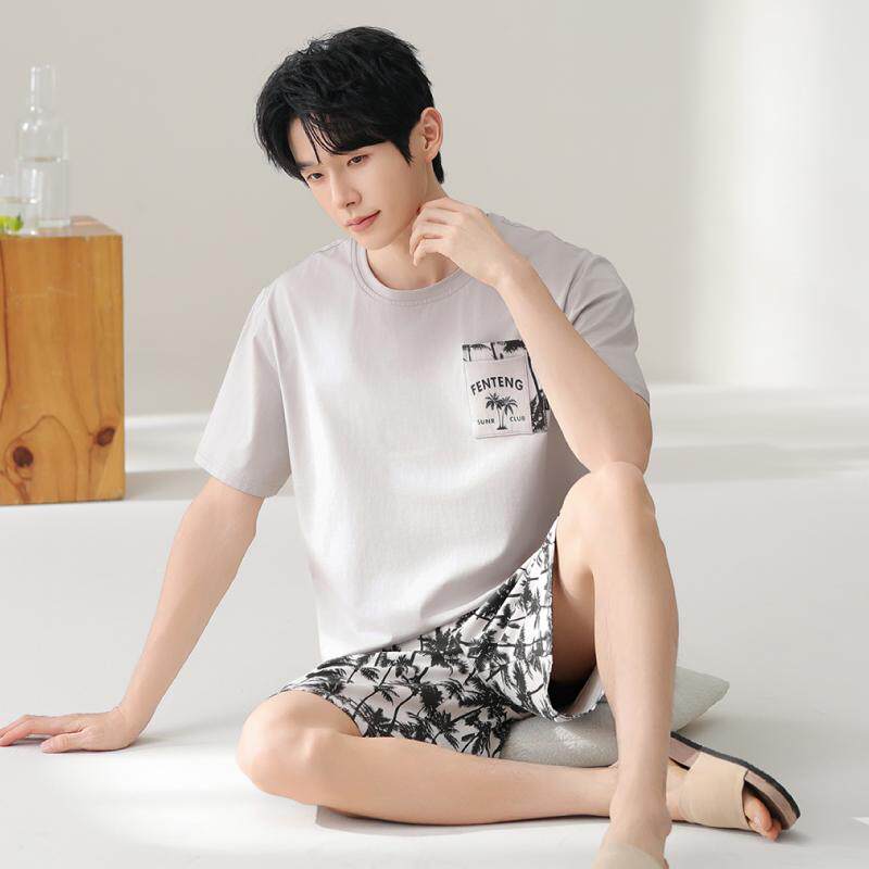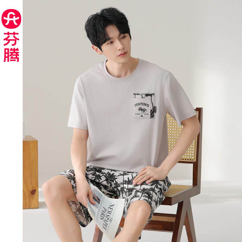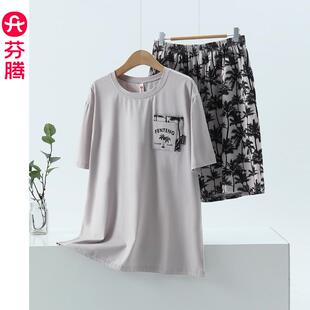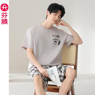 短裤 套装 纯棉男款 芬腾睡衣男士 休闲可外穿家居服套装 短袖 大码 夏季