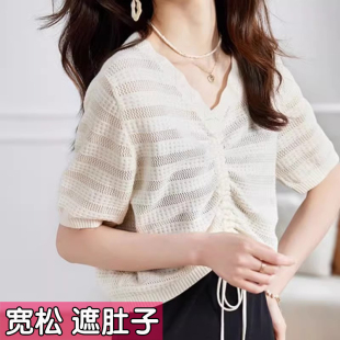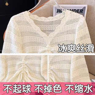 上衣吊带连衣裙两件套胖mm夏季 大码 针织衫 女套装 镂空抽绳冰丝罩衫
