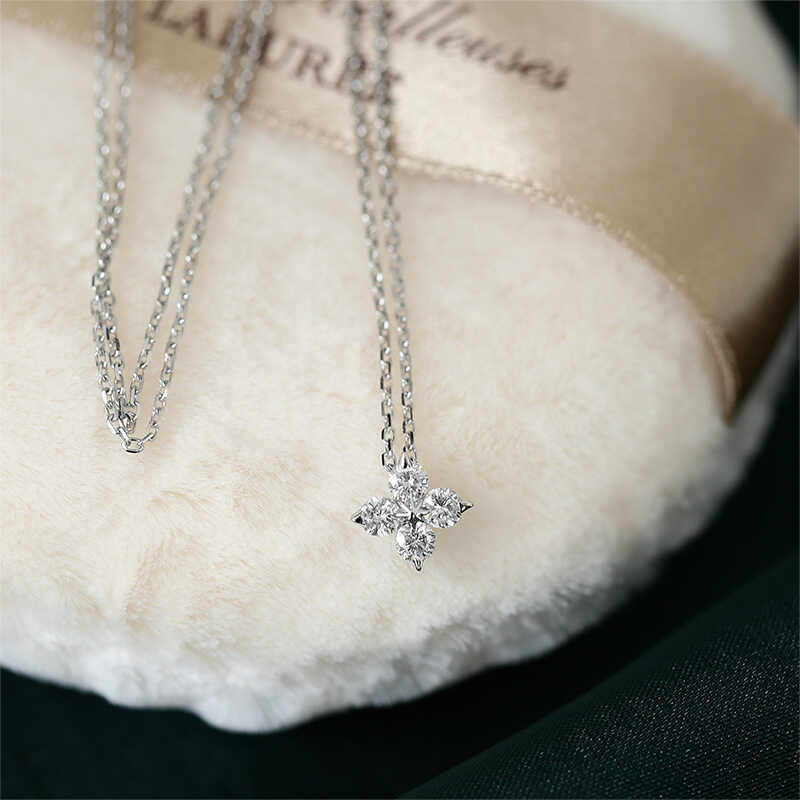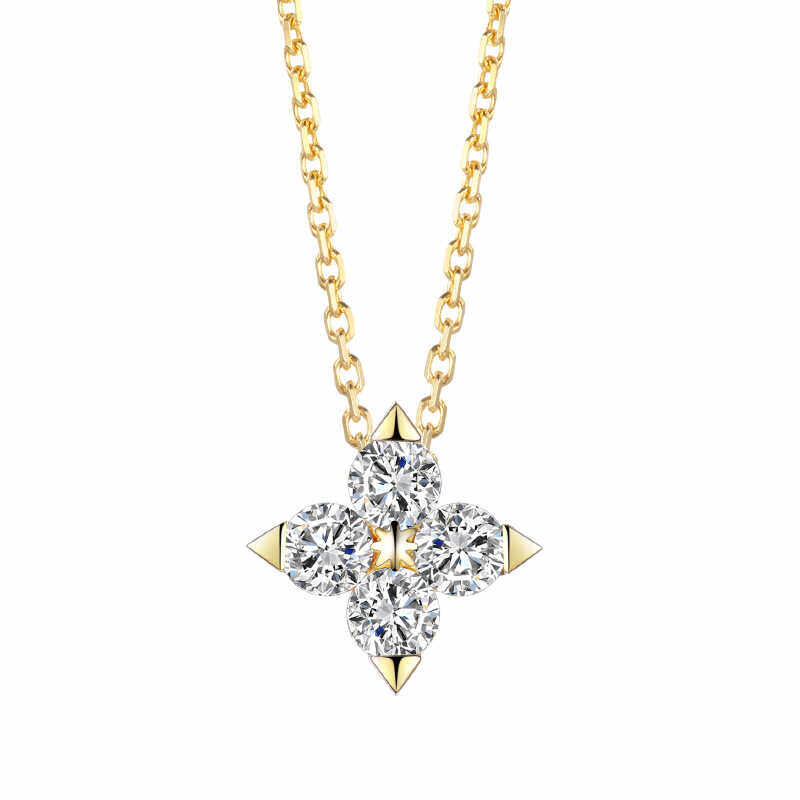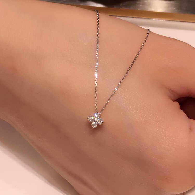ROMANTIC幸运草 精致 S925镀14K金色超闪四叶草吊坠项链锁骨链时尚