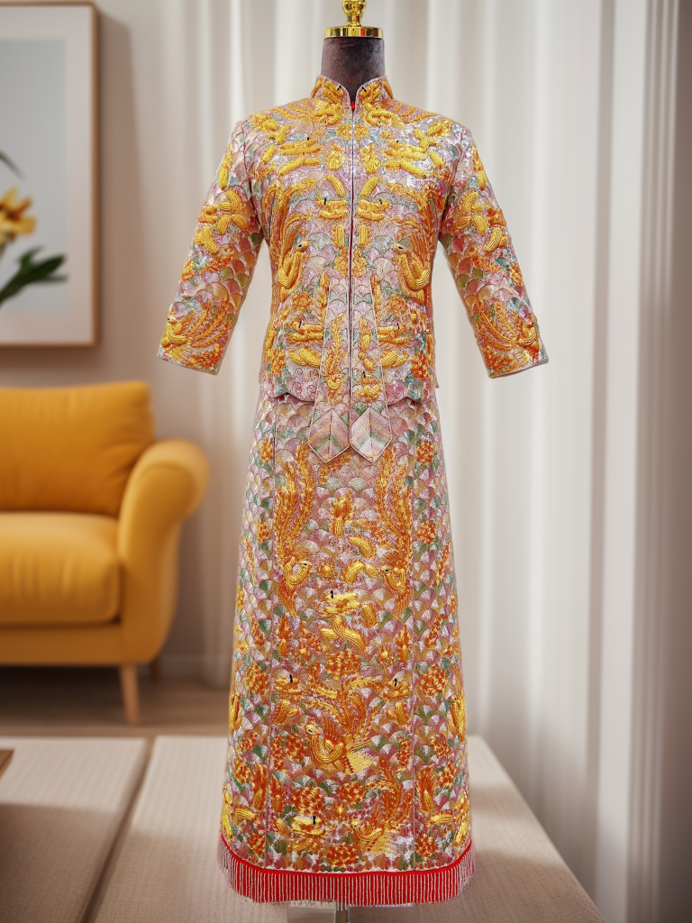 褂皇后龙凤褂出租手工中式 结婚新娘龙凤裙褂礼服秀禾婚服嫁衣租赁