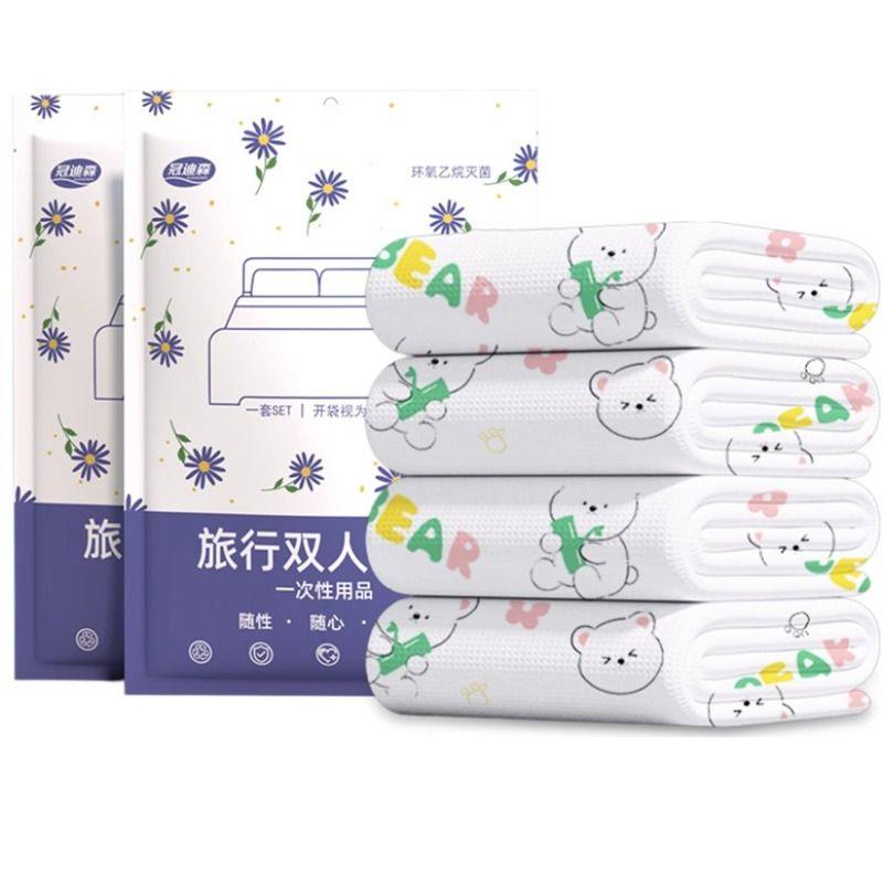 一次性床单被罩枕套酒店双人四件套装 三件套隔脏加厚出差旅行必备