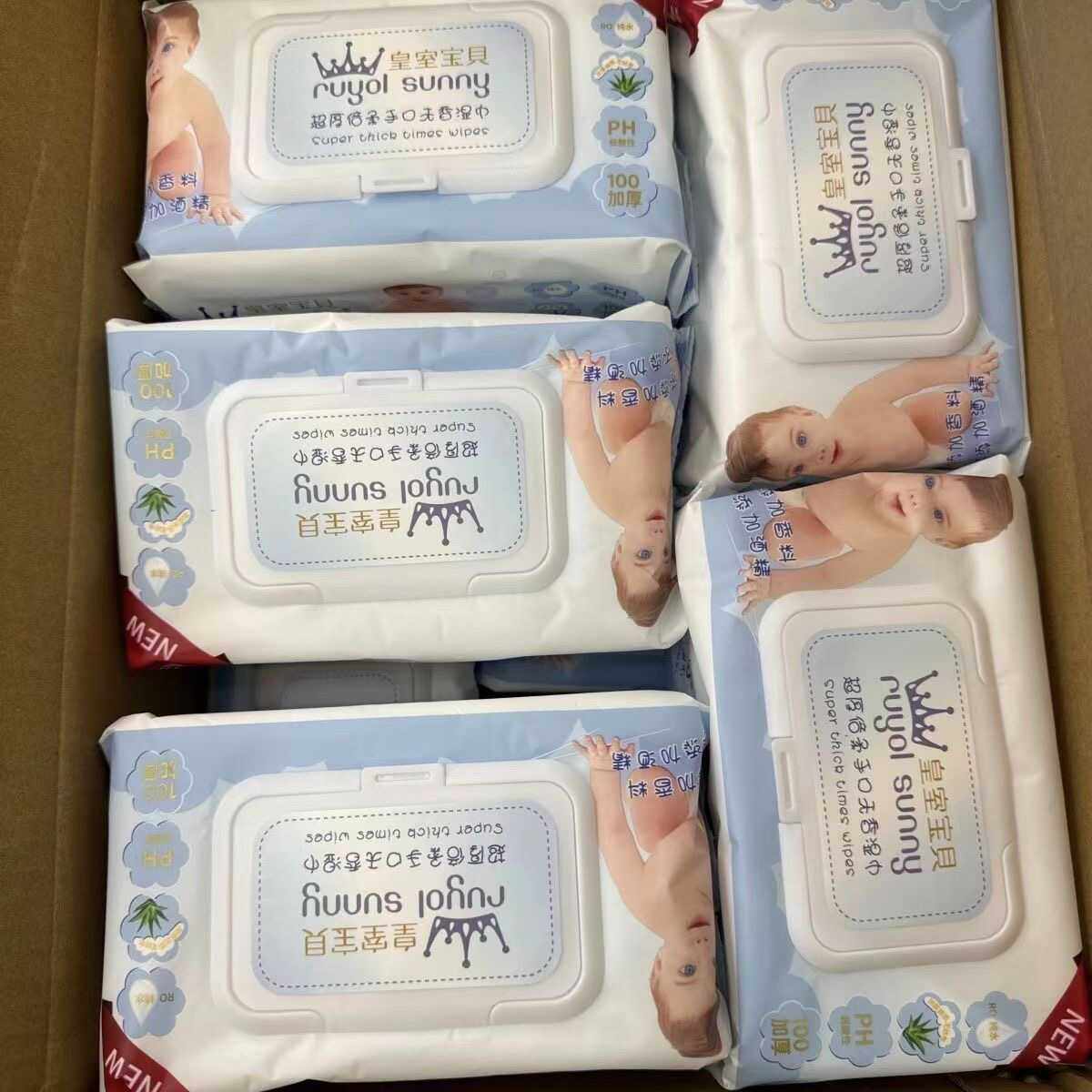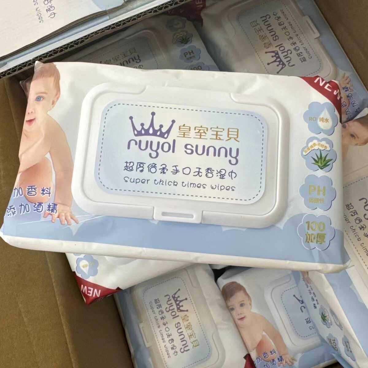 皇室宝贝婴儿湿巾100抽1包新生儿宝宝手口屁专用加厚珍珠纹带盖