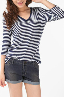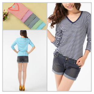 女装 秋装 T恤打底衫 包邮 条纹简约9分袖 大码 修身 超值 韩版