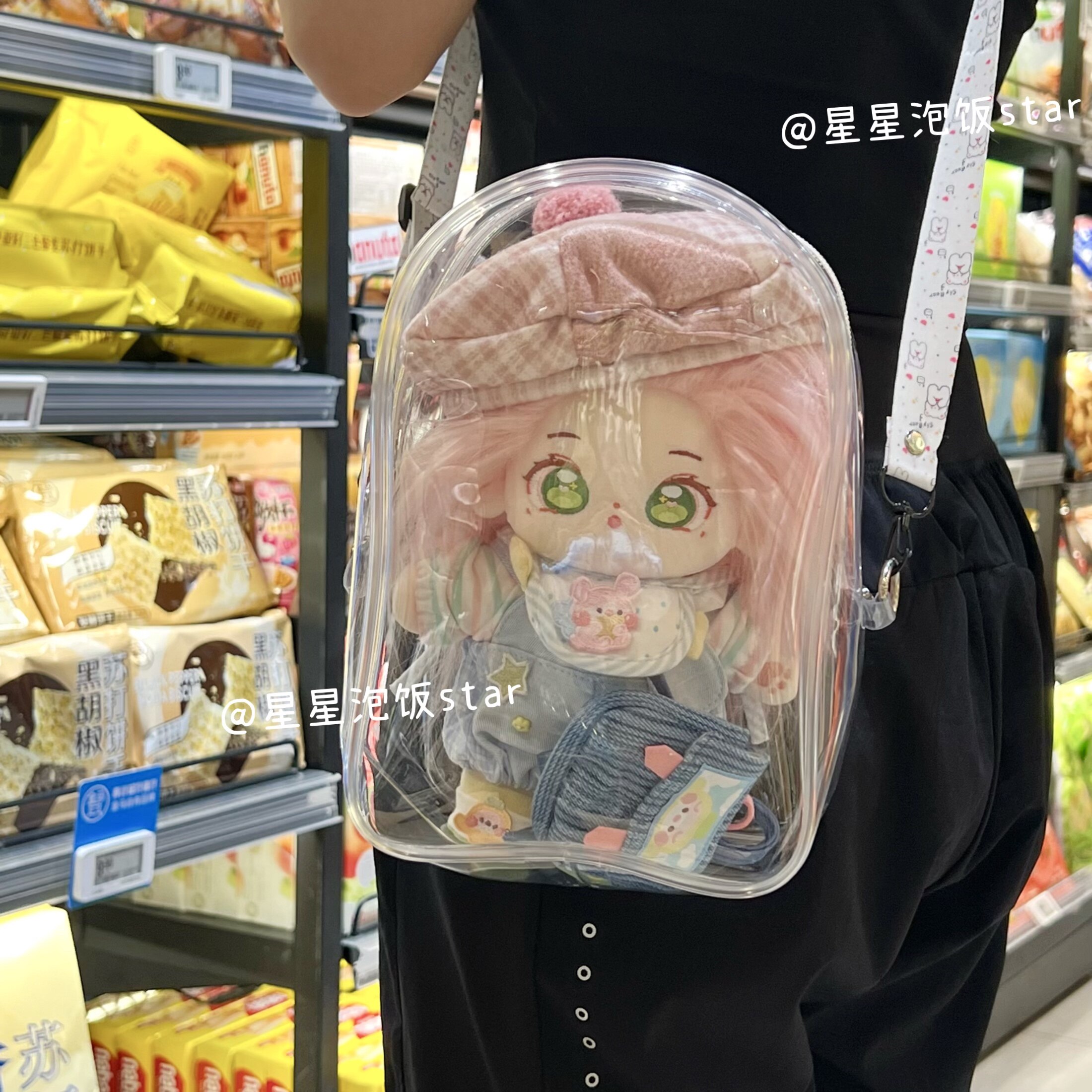 透明痛包20cm棉花娃娃外出包遛娃包背带款 斜挎单肩包收纳防尘简约
