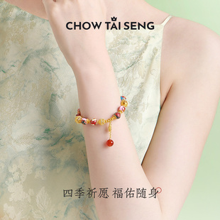 周大生东方花园国潮银手串玉髓绣球流光手链新中式 本命年新年礼物