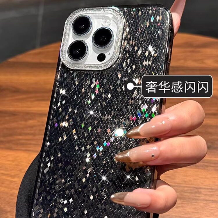 高端奢华闪粉亮片适用苹果15promax手机壳iPhone14黑色13硅胶16pro女神气质12小众plus不会撞壳高颜值超火17e