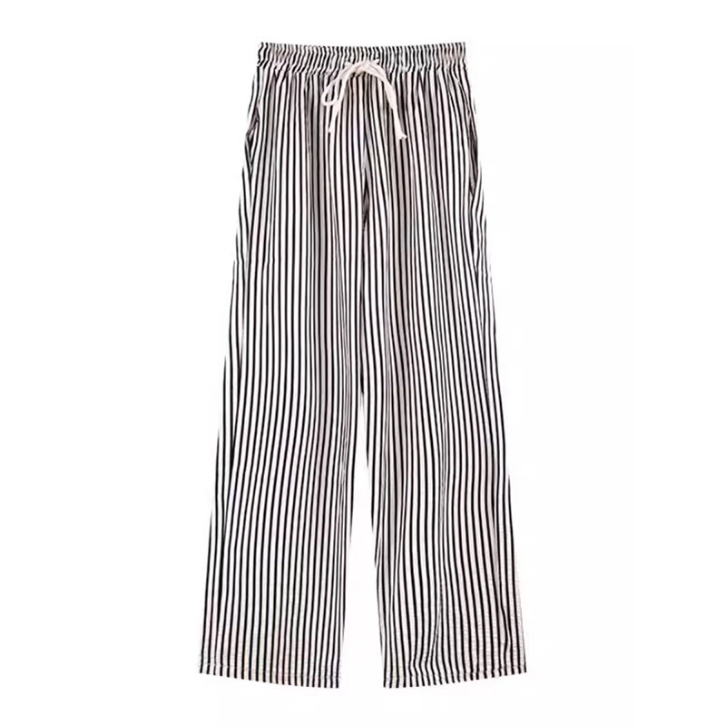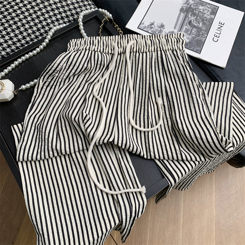 145九分休闲裤 女夏垂感宽松冰丝裤 子150黑白条纹阔腿裤 小个子裤