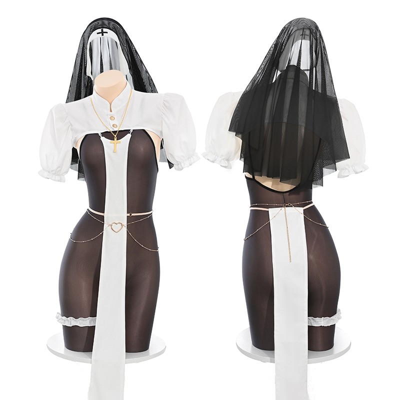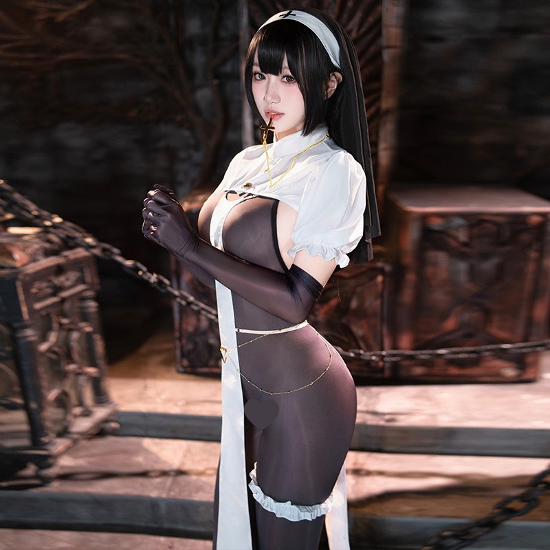 修身 暗夜修女风黑色丝滑连体衣cosplay女装 显瘦 高品 STELLA