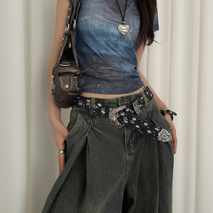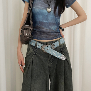 饰裤 复古牛仔设计感腰带女个性 皮带装 风配牛仔裤 带潮 y2k做旧美式
