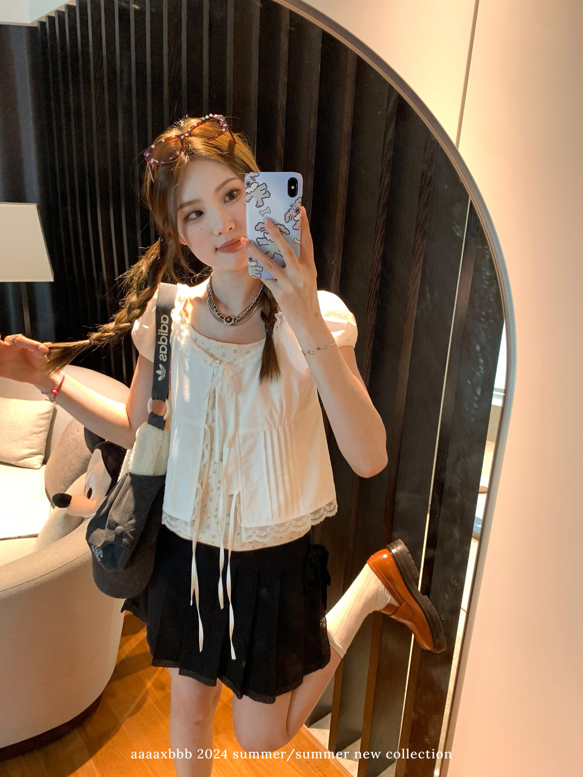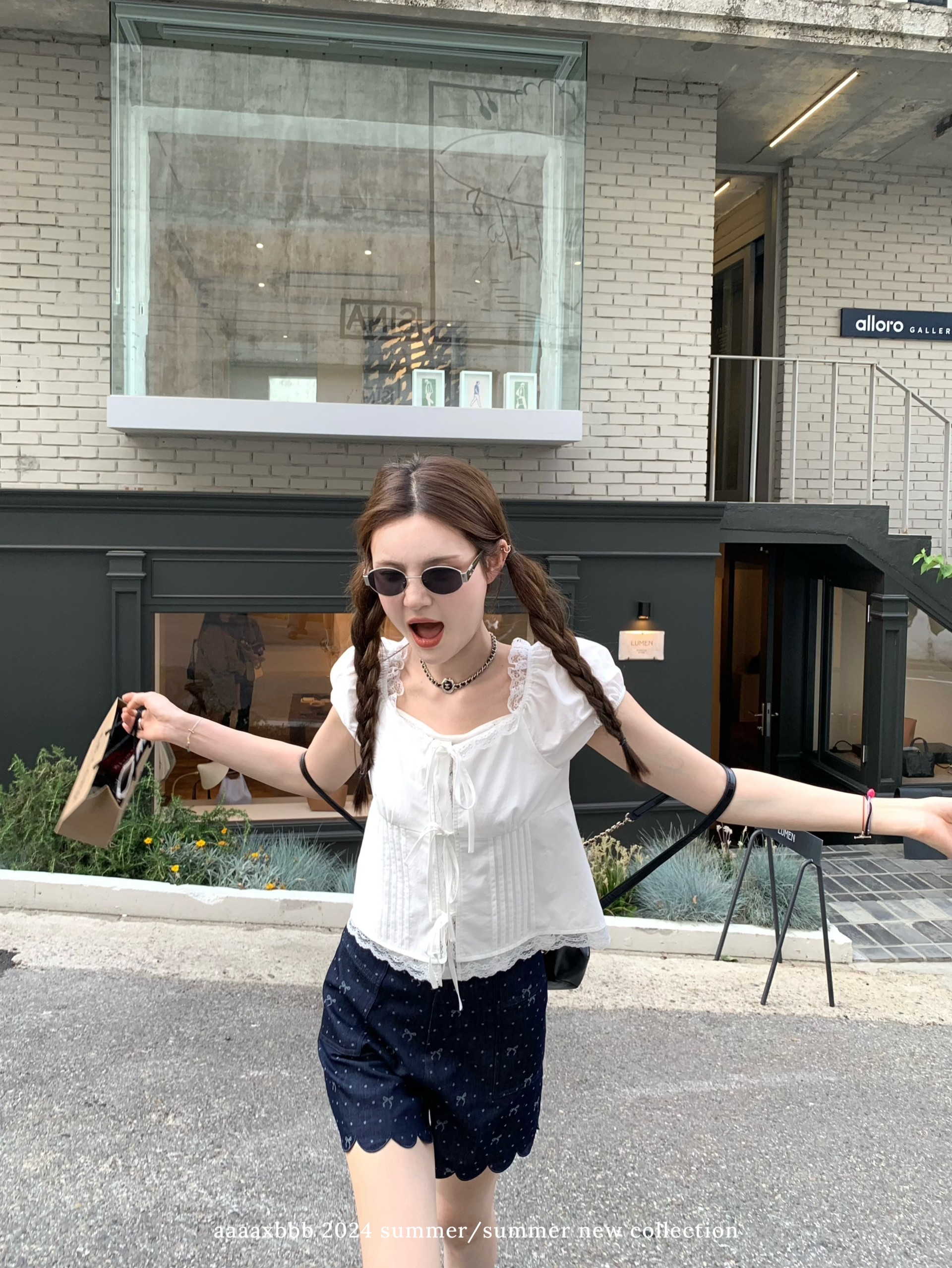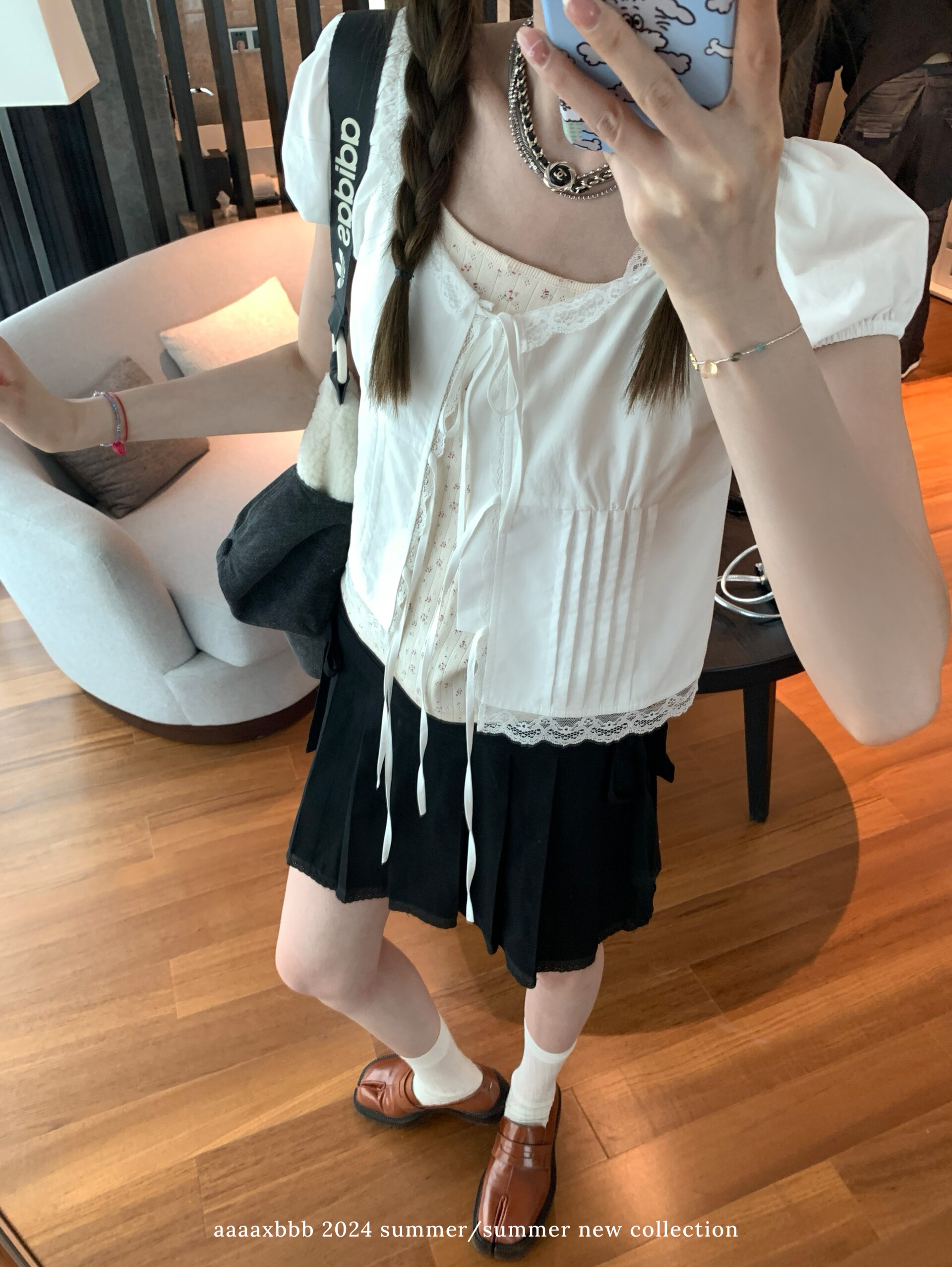 短款 aaaaxbbb 天丝棉短袖 上衣吊带两件套蕾丝衬衫 百搭 妮妮私服
