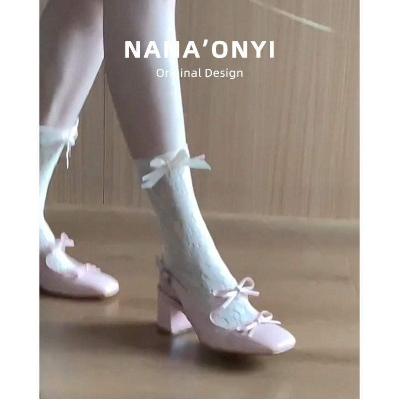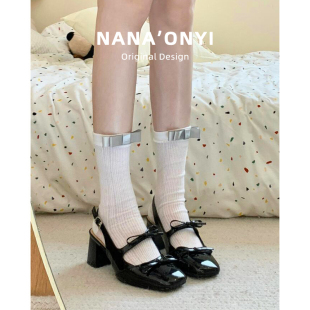 高级感气质银色蝴蝶结粗跟高跟单鞋 时尚 女夏外穿2025新款 包头凉鞋