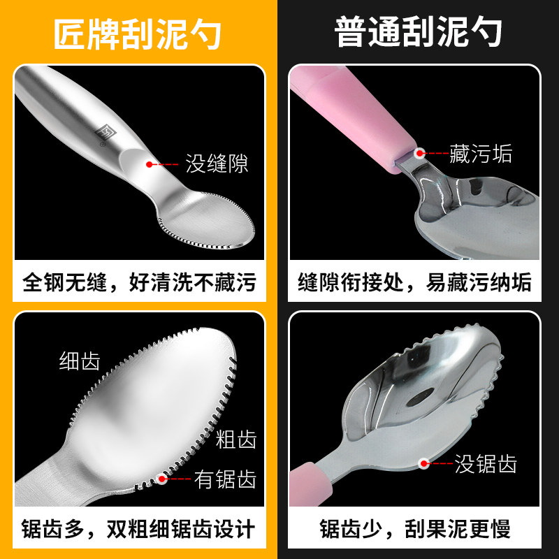 如山元 宝勺子婴儿316L不锈钢儿童宝宝自主进食吃饭调羹长柄辅食勺