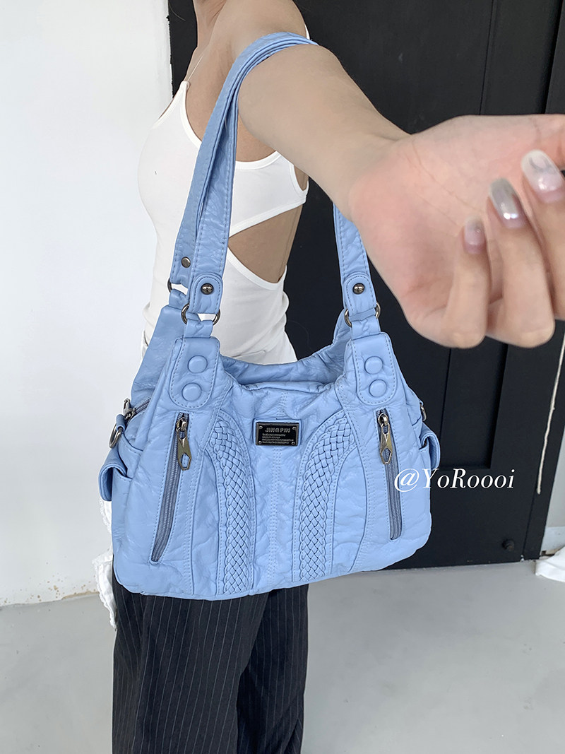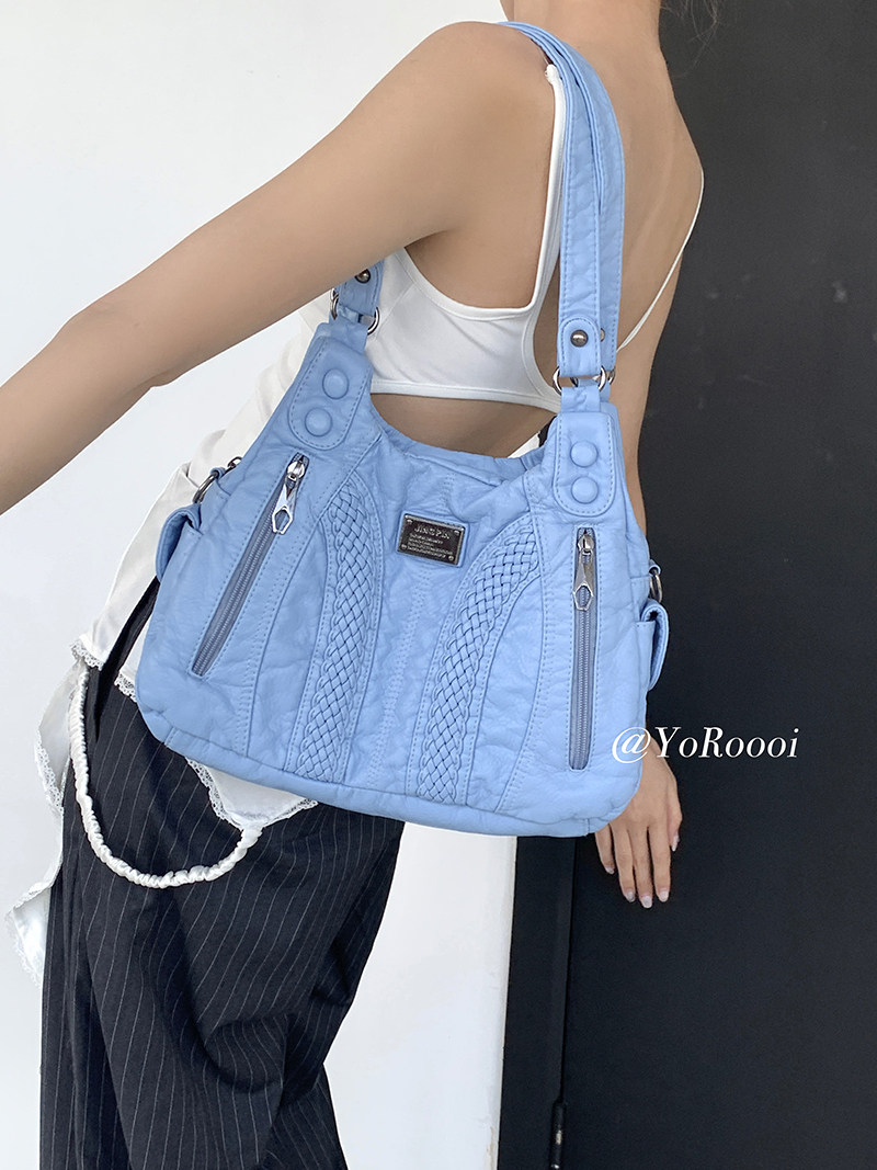 天蓝色百搭出街水洗单肩包日常实用手提包斜跨包 新款 YoRoooi 夏季