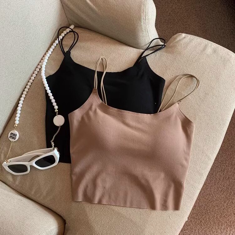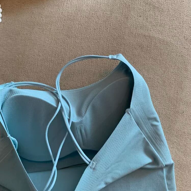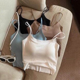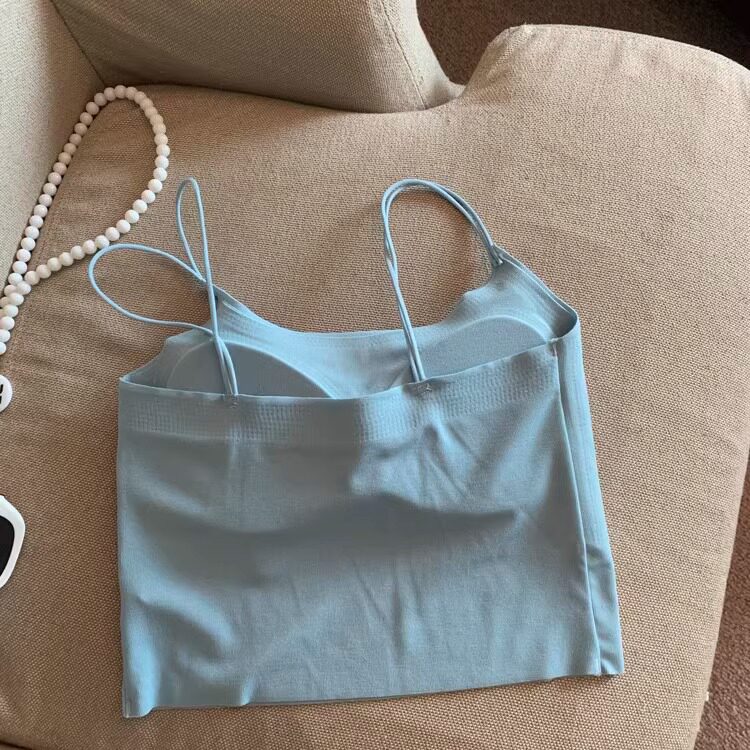 上衣 短款 ins奶油风蓝色吊带背心女夏季 带胸垫无痕细肩带气质修身