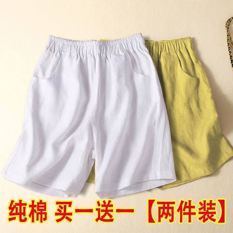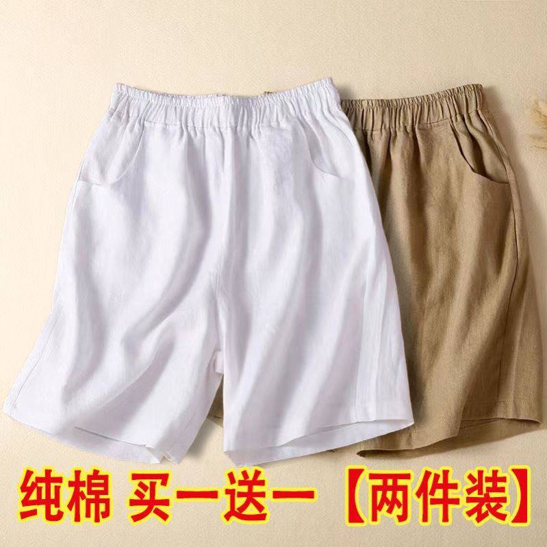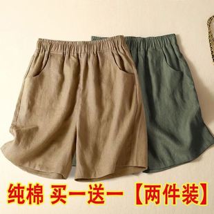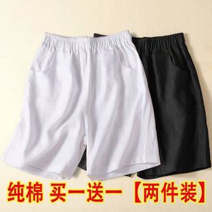女中年妈妈阔腿裤 高腰短裤 子夏季 纯色宽松大码 单 休闲五分裤 两件