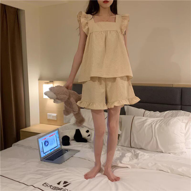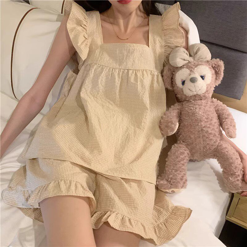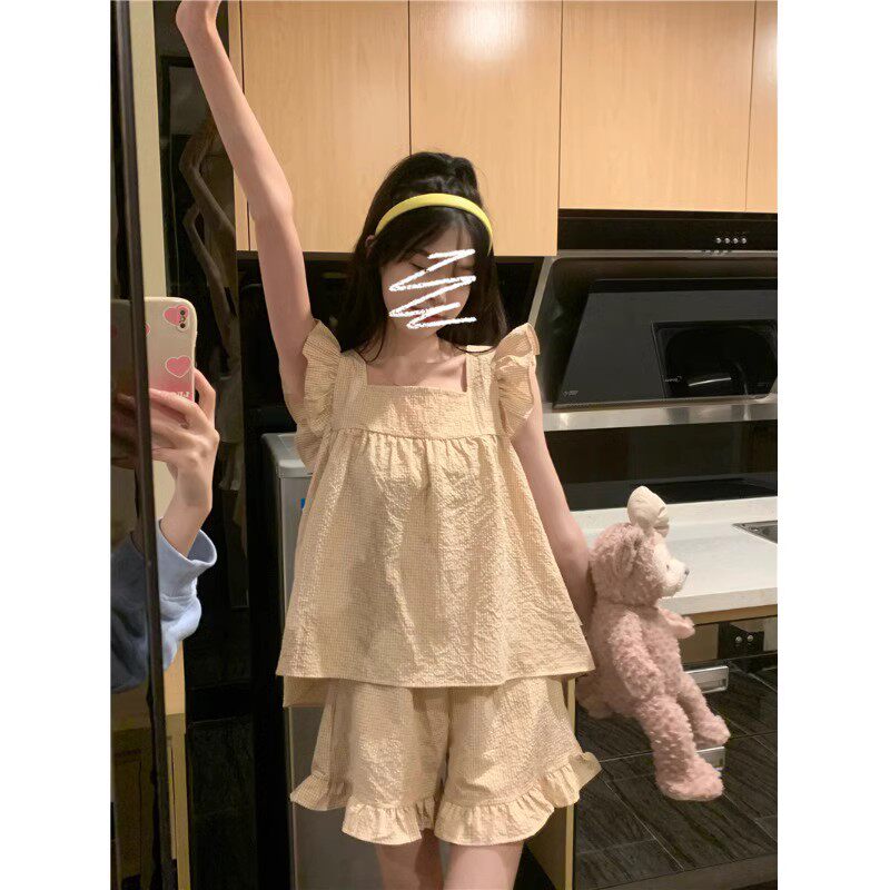 纯棉睡衣女夏天可外穿 家居服套装 小个子ins风吊带夏季 两件套夏款