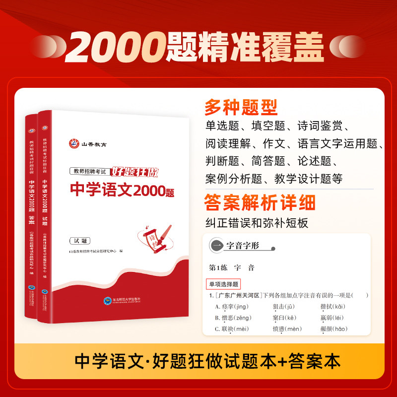 山香2026年教师招聘考试好题狂做真题库幼儿园中小学教招语文数学英语音乐美术体育政治学科专业知识刷题26香山招教考编用书大红本