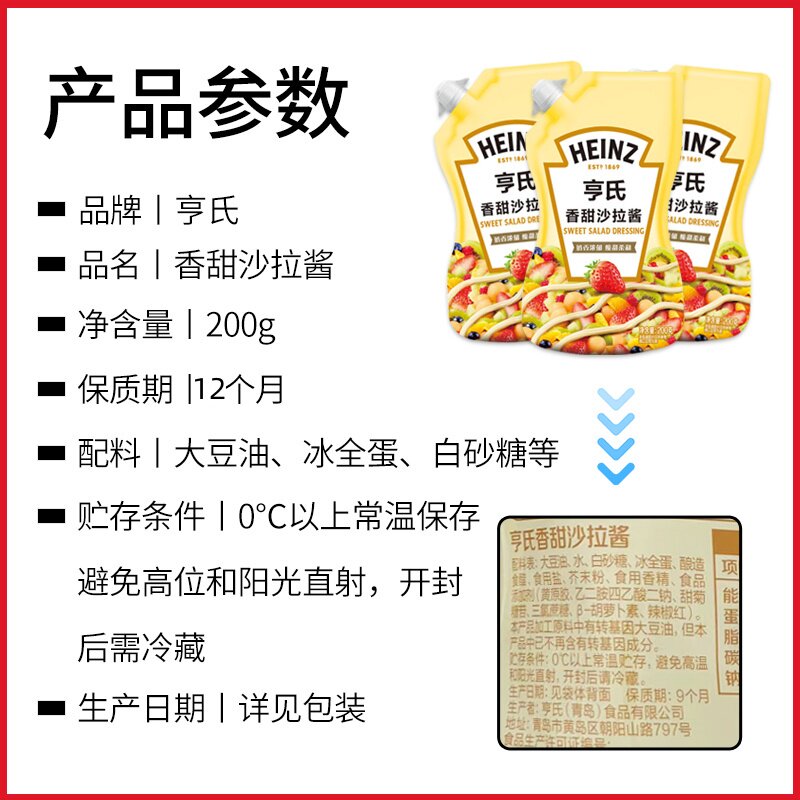 亨氏香甜沙拉酱200g 2家用水果蔬菜调料烘焙寿司专用酱料香甜原味