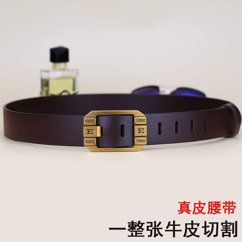 带男 腰带复古百搭青年牛仔裤 头层牛皮皮带男真皮休闲个性 针扣男士