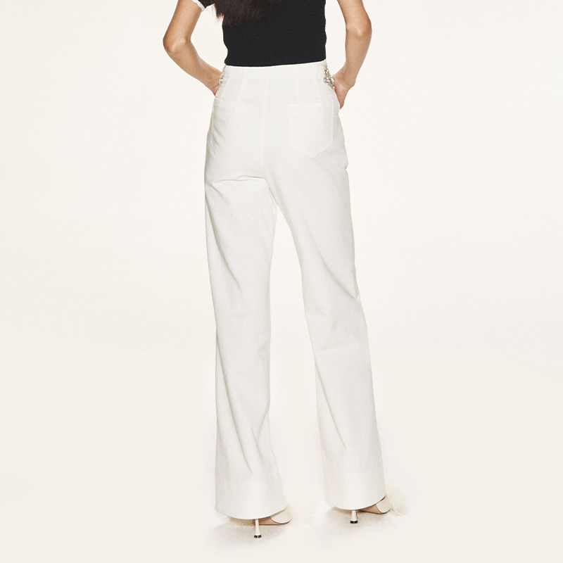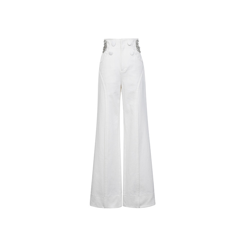 女水洗牛仔裤 lefame拉飞姆春季 白色牛仔长裤 显瘦阔腿裤 直筒裤