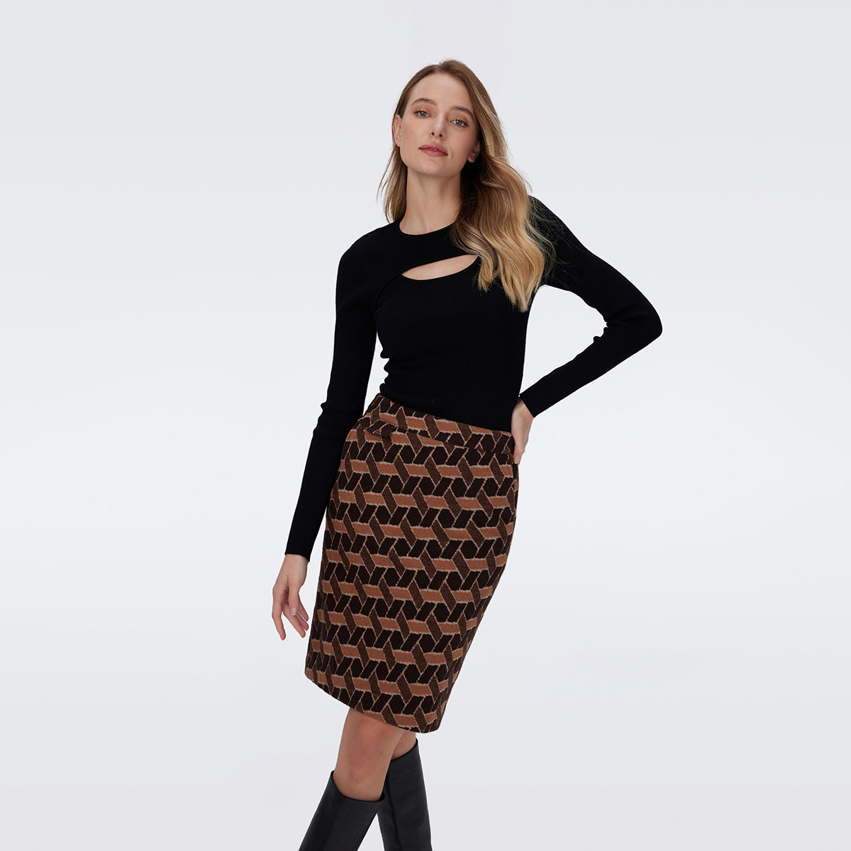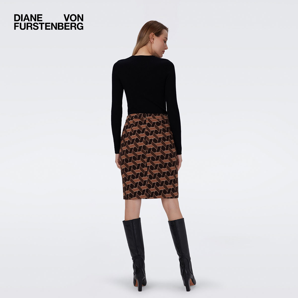 包臀裙几何提花中长款 DVF 羊毛针织半身裙KM3R005 博主同款