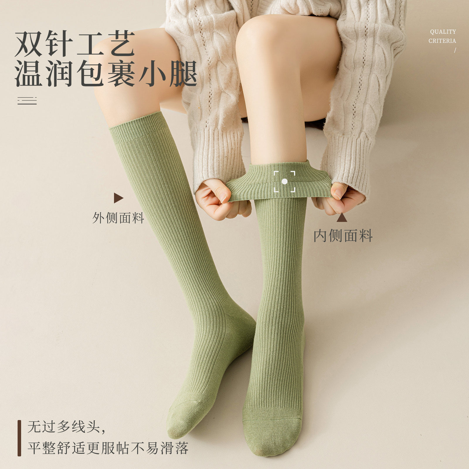 羊毛小腿袜子女秋冬款 长袜及膝袜配靴子冬天 保暖厚高筒长筒袜冬季
