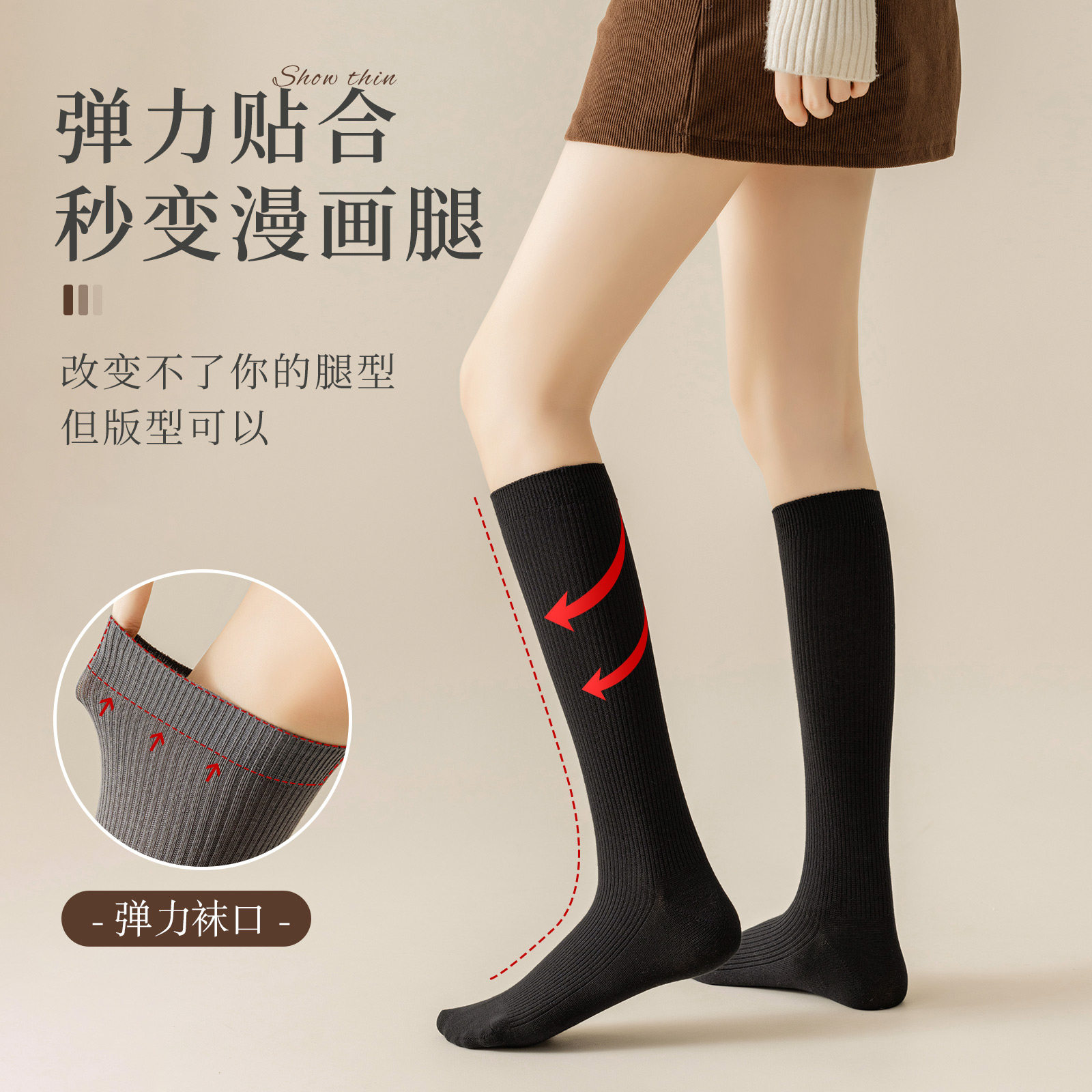 压力小腿袜女秋冬季 强压瘦腿中筒jk袜子长袜过膝袜防滑黑色长筒袜