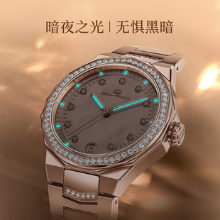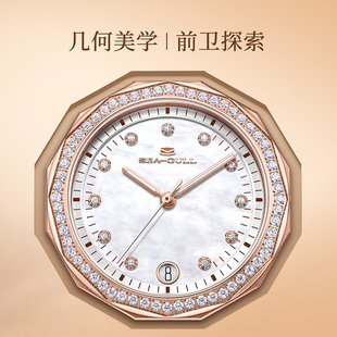海鸥表手表女款 轻奢机械女表几何设计贝母盘镶钻腕表1140L