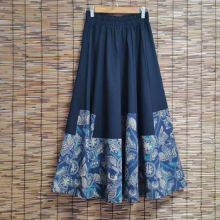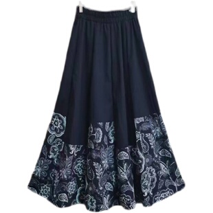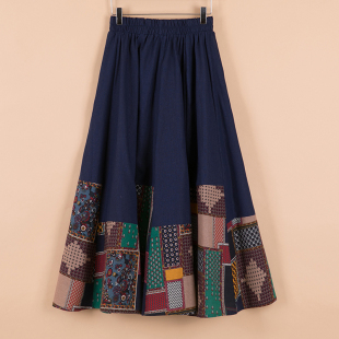 2025春夏新款 文艺拼接亚麻半身裙大摆裙波西米亚棉麻显瘦a字长裙