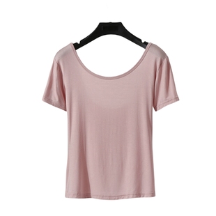 美背短袖 莫代尔大圆领薄款 短款 女夏季 T恤黑色白色上衣 内搭打底衫