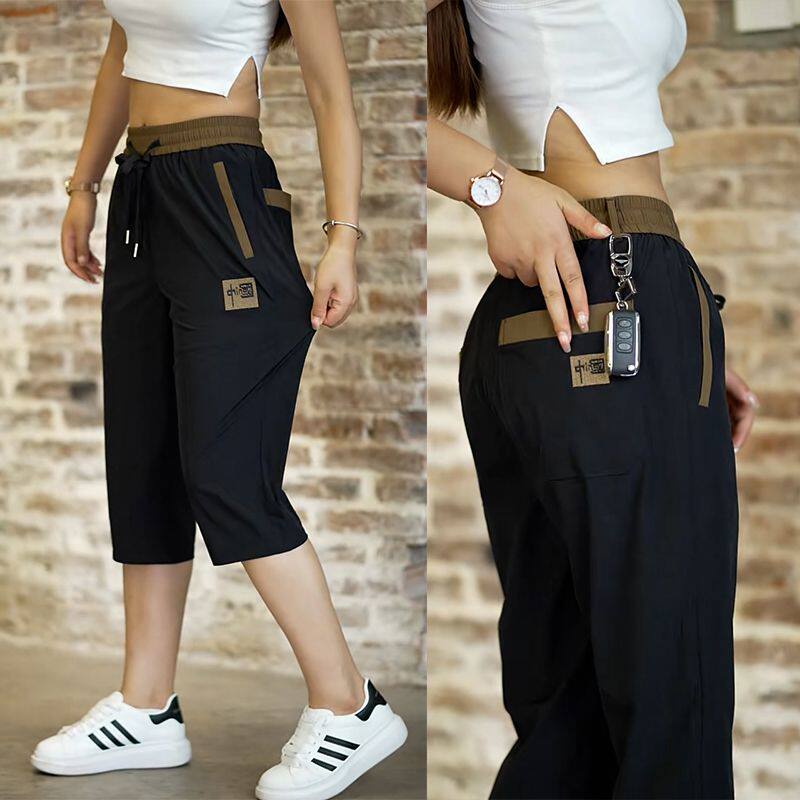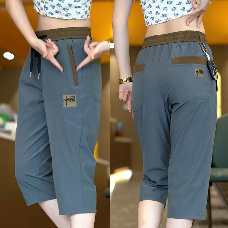 冰丝裤 宽松百搭潮流休闲裤 时尚 短裤 男卫裤 薄款 刺绣七分裤 子 男夏季