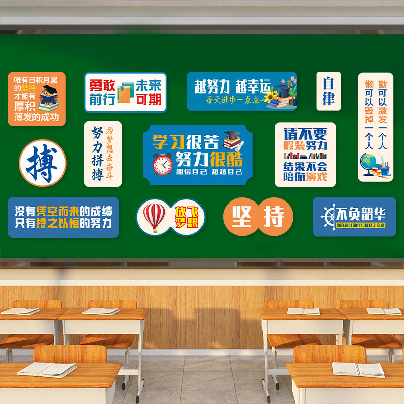 小学教室装 饰黑板报励志标语墙贴高三中考班级文化墙布置学习神器