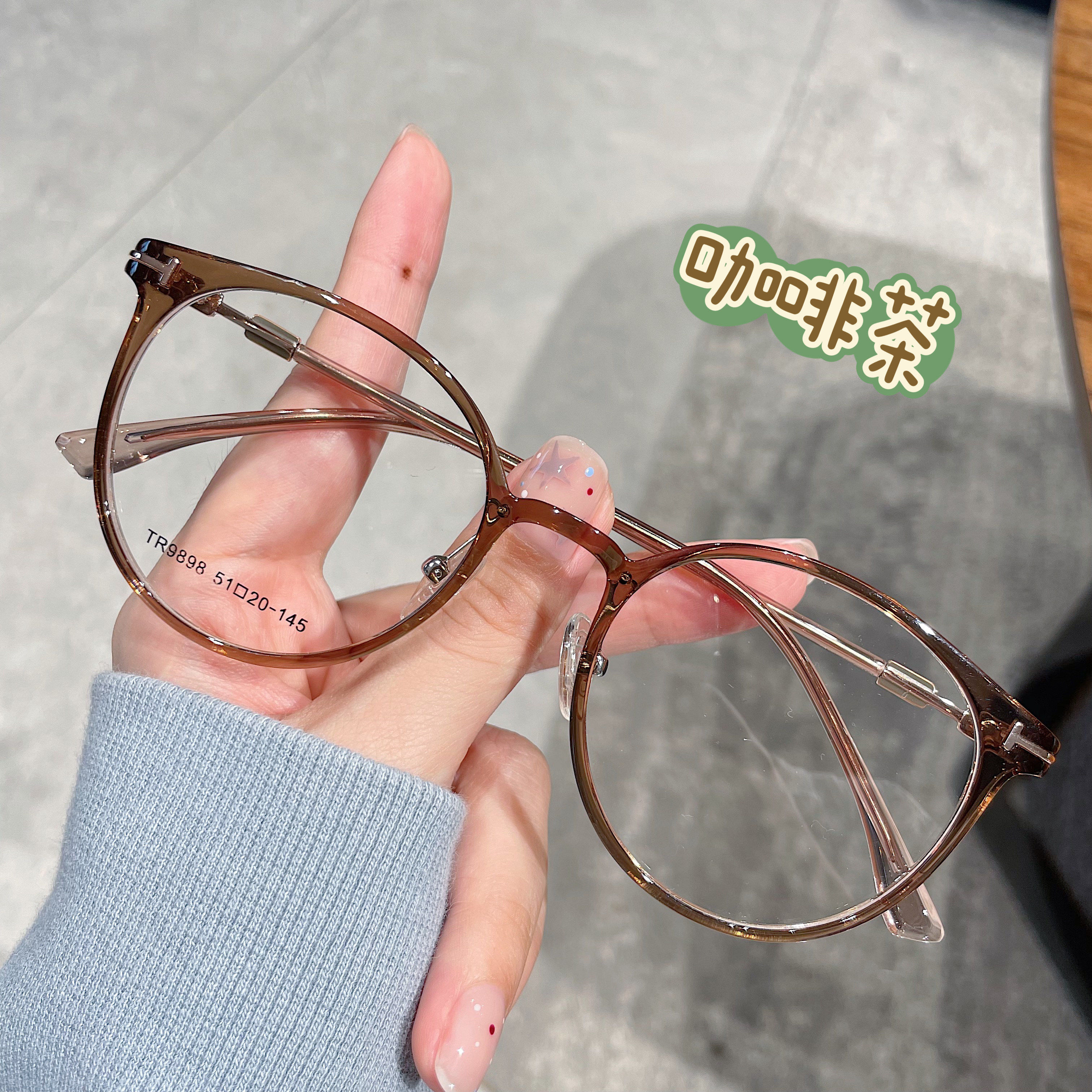 TR超轻复古小圆防蓝光近视眼镜女可配高度数素颜百搭韩系平光镜男