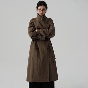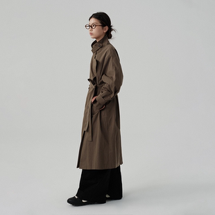 双排扣风衣 秋冬缩皱感棉锦混纺偏门襟轻薄简约中长款 Veega Chic